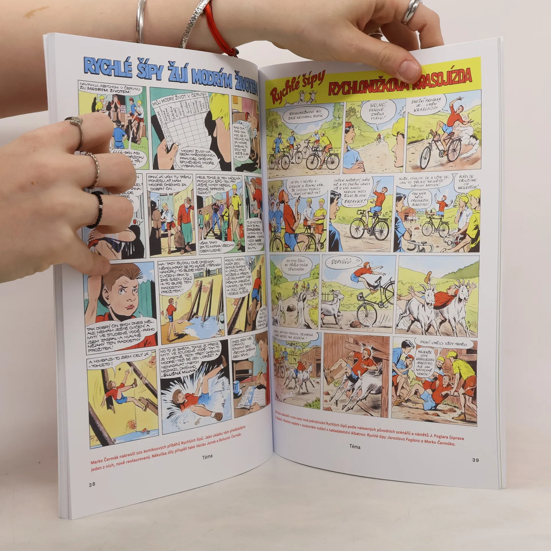 Sešitové vydání Rychlých šípů otevírá celý nový svět příběhů Jaroslava Foglara! Rychlé šípy vycházejí pro malé čtenáře i jejich rodiče v novém sešitovém vydání. V každém svazečku najdete původní komiksový seriál a zároveň zbrusu nové komiksy ze světa Jaroslava Foglara od současných tvůrců. Komiksy jsou doplněné tematickým povídáním, hrami, soutěžemi a kvízy. Vhodné pro každého plantážníka od 6 do 99 let! V prvním díle se seznámíte podrobně s Rychlými šípy. V novém seriálu kreslíře Nikkarina poznáte dnešní Plantážníky, kteří pátrají po minulosti slavného klubu. Do ponurého dětství vynálezce létajícího kola Jana Tleskače se přenesete v komiksu od Davida J. Žáka a Renaty Wilfling.