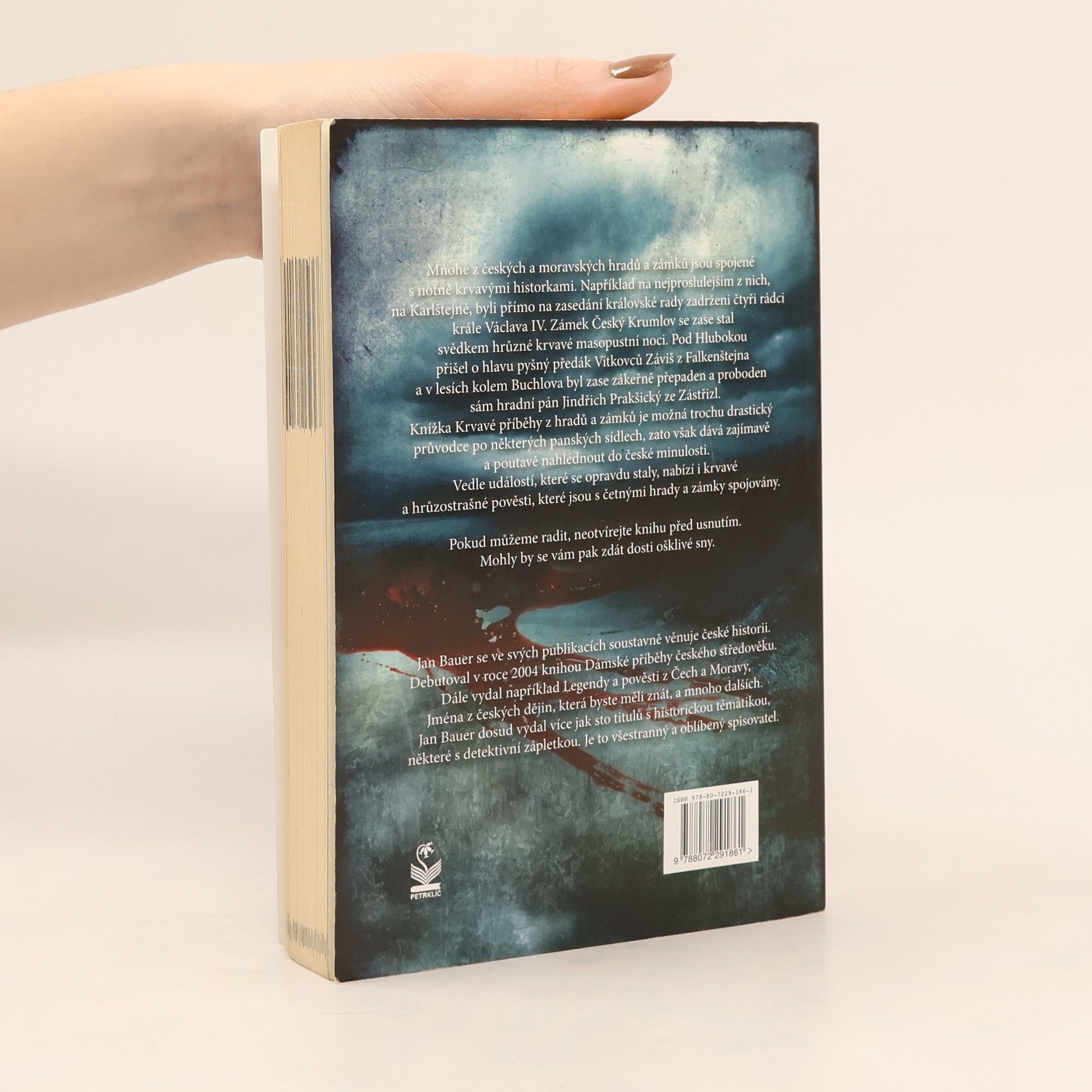 Mnohé z českých a moravských hradů a zámků jsou spojeny s notně krvavými historiemi. Například na snad neproslulejším z nich, na Karlštejně, byli přímo na zasedání královské rady zavražděni čtyři rádci krále Václava IV. Zámek Český Krumlov se zase stal svědkem hrůzně krvavé masopustní noci. Pod Hlubokou přišel o hlavu pyšný předák Vítkovců Záviš z Falkenštejna a v lesích kolem Buchlova byl zase zákeřně přepaden a pobodán sám hradní pán Jindřich Prakšický ze Zástřizl. Knížka Krvavé příběhy z hradů a zámků je možná trochu drastickým průvodcem po někdejších panských sídlech, za to však dává zajímavě a poutavě nahlédnout do české minulosti. Vedle událostí, které se opravdu staly, nabízí i krvavé a hrůzostrašné pověsti, které jsou s četnými hrady a zámky spojovány. Pokud můžeme radit, neotvírejte knihu před usnutím. Mohly by se vám pak zdát dosti ošklivé sny.