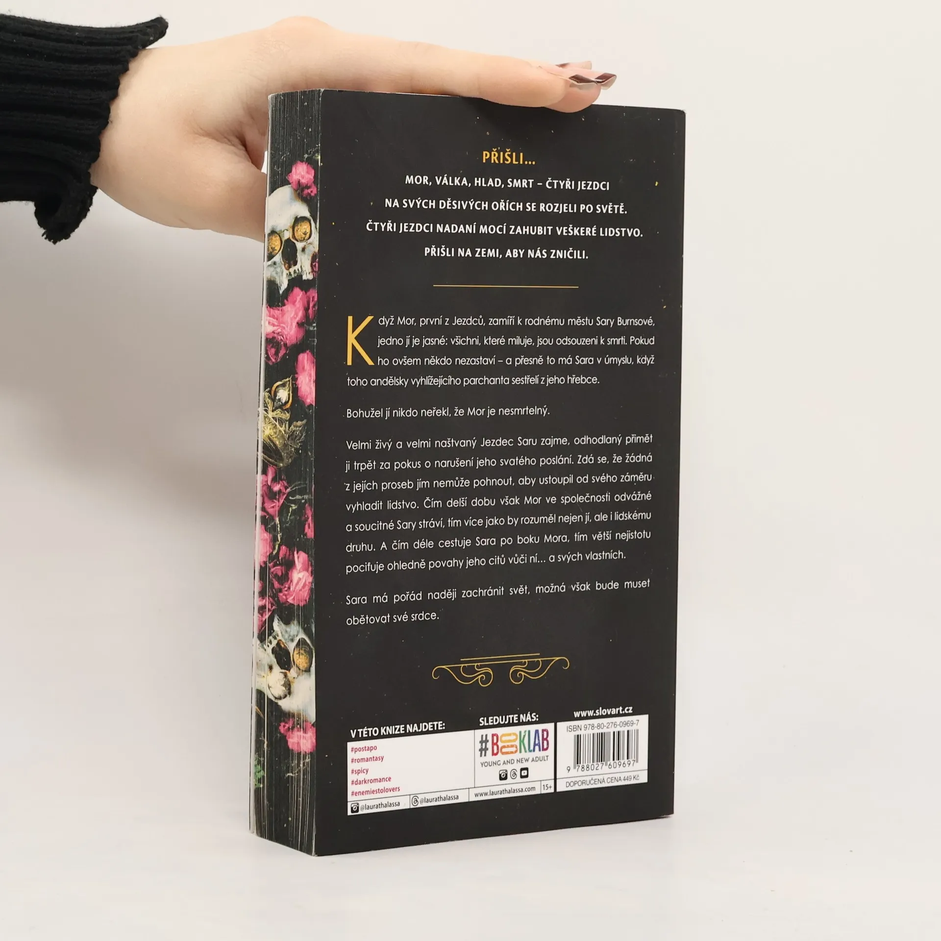 PŘIŠLI… MOR, VÁLKA, HLAD, SMRT - ČTYŘI JEZDCI NA SVÝCH DĚSIVÝCH OŘÍCH SE ROZJELI PO SVĚTĚ. ČTYŘI JEZDCI NADANÍ MOCÍ ZAHUBIT VEŠKERÉ LIDSTVO. PŘIŠLI NA ZEMI. PŘIŠLI NÁS ZNIČIT. Když Mor, první z Jezdců, zamíří k rodnému městu Sary Burnsové, jedno jí je jasné: všichni, které miluje, jsou odsouzeni k smrti. Pokud ho ovšem někdo nezastaví - a přesně to má Sara v úmyslu, když toho andělsky vyhlížejícího parchanta sestřelí z jeho hřebce. Bohužel jí nikdo neřekl, že Mor je nesmrtelný. Velmi živý a velmi naštvaný Jezdec Saru zajme, odhodlaný přimět ji trpět za pokus o narušení jeho svatého poslání. Zdá se, že žádná z jejích proseb jím nemůže pohnout, aby ustoupil od svého záměru vyhladit lidstvo. Čím delší dobu však Mor ve společnosti odvážné a soucitné Sary stráví, tím více jako by rozuměl nejen jí, ale i lidskému druhu. A čím déle cestuje Sara po boku Mora, tím větší nejistotu pociťuje ohledně povahy jeho citů vůči ní… a svých vlastních. Sara má pořád naději zachránit svět, možná však bude muset obětovat své srdce.