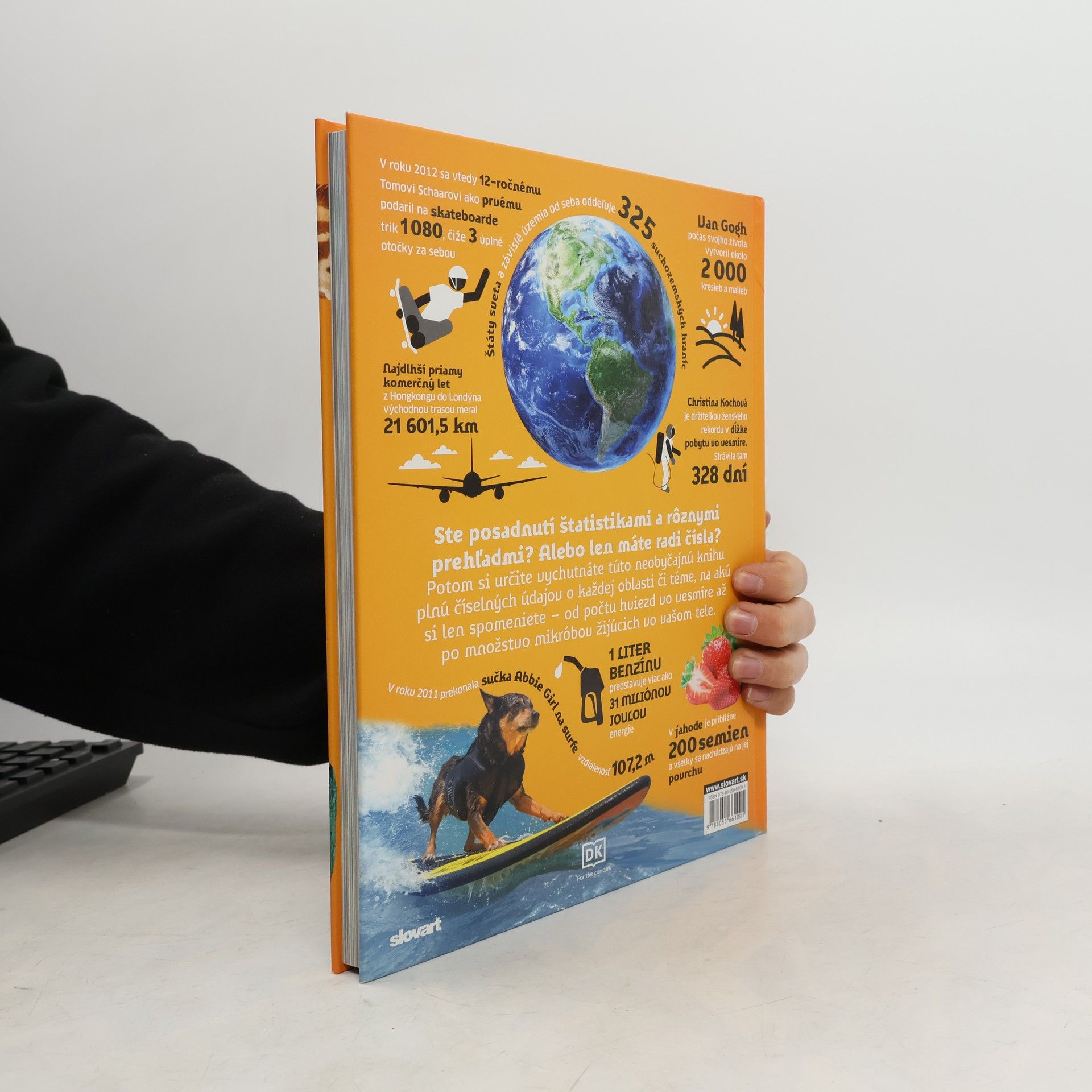 te posadnutí štatistikami a rôznymi prehľadmi? Alebo len máte radi čísla? Potom si určite vychutnáte túto neobyčajnú knihu plnú číselných údajov o každej oblasti či téme, na akú si len spomeniete - od počtu hviezd vo vesmíre až po množstvo mikróbov žijúcich vo vašom tele a na ňom. Nájdete v nej stovky podivuhodných i zábavných faktov, ktoré ponúkajú odpovede napríklad aj na takéto otázky: Koľko meral najdlhší filmový skok na bungee lane? Akú rýchlosť dosahujú korčuliari na krátkej dráhe? Koľko trvá, kým obehne Slnko okolo našej Galaxie? Vďaka číslam spoznáte svet v súvislostiach, o ktorých ste doteraz možno ani netušili.