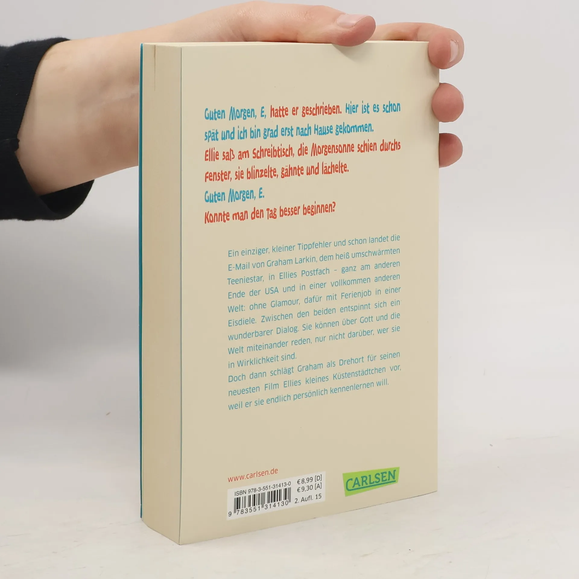 Ein einziger, kleiner Tippfehler und schon landet die Email von Graham Larkin, dem zurzeit am heißesten umschwärmten Teeniestar, in Ellies Postfach - ganz am anderen Ende der USA und in einer vollkommen anderen Welt: ohne Glamour, dafür mit Ferienjob in einer Eisdiele. Dennoch, und ohne, dass der eine irgendetwas vom anderen weiß, entspinnt sich sofort ein wunderbarer, sprühender Dialog zwischen den beiden. Sie können über Gott und die Welt miteinander reden, nur nicht darüber, wer sie in Wirklichkeit sind. Doch dann schlägt Graham als Drehort für seinen neuesten Film Ellies kleines Küstenstädtchen vor, weil er sie endlich persönlich kennenlernen will. Aber wie macht man das als überall bekannter Filmstar und warum scheut umgekehrt Ellie die Öffentlichkeit so sehr?
