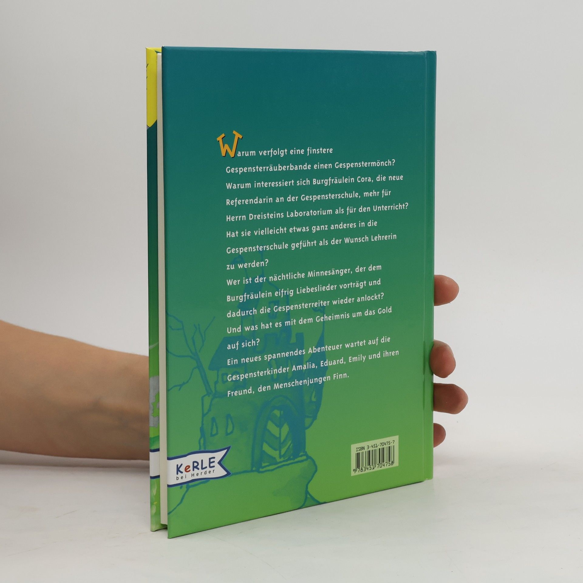Warum verfolgt eine finstere Gespensterräuberbande einen Gespenstermönch? Warum interessiert sich Burgfräulein Cora, die neue Referendarin an der Gespensterschule, mehr für Herrn Dreisteins Laboratorium als für den Unterricht? Hat sie vielleicht etwas ganz anderes in die Gespensterschule geführt als der Wunsch Lehrerin zu werden? Wer ist der nächtliche Minnesänger, der dem Burgfräulein eifrig Liebeslieder vorträgt und dadurch die Gespensterreiter wieder anlockt? Und was hat es mit dem Geheimnis um das Gold auf sich? Ein neues spannendes Abenteuer wartet auf die Gespensterkinder Amalia, Eduard, Emily und ihren Freund, den Menschenjungen Finn.