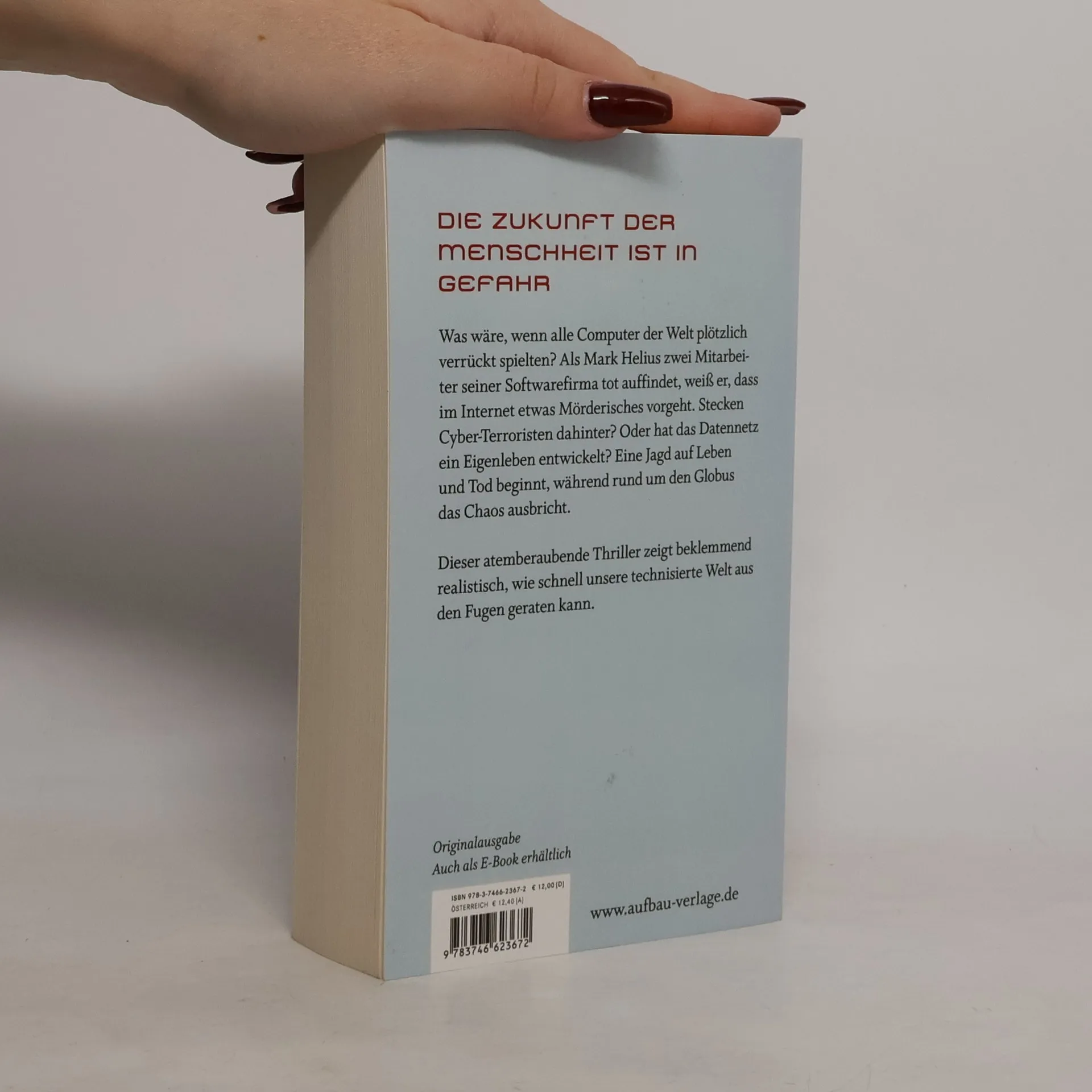 Die Zukunft der Menschheit ist in Gefahr. Was wäre, wenn alle Computer der Welt plötzlich verrückt spielten? Als Mark Helius zwei Mitarbeiter seiner Softwarefirma tot auffindet, weiß er, dass im Internet etwas Mörderisches vorgeht. Stecken Cyber-Terroristen dahinter? Oder hat das Datennetz ein Eigenleben entwickelt? Eine Jagd auf Leben und Tod beginnt, während rund um den Globus das Chaos ausbricht. Dieser atemberaubende Thriller zeigt beklemmend realistisch, wie schnell unsere technisierte Welt aus den Fugen geraten kann.