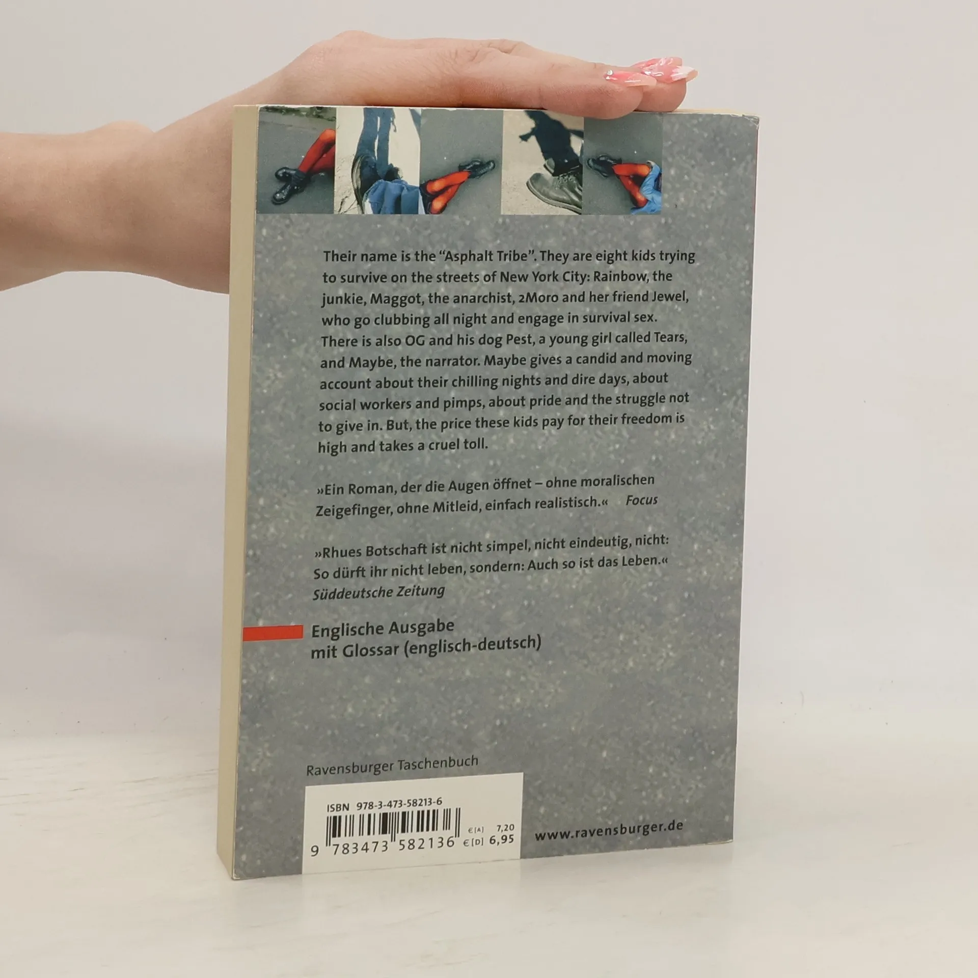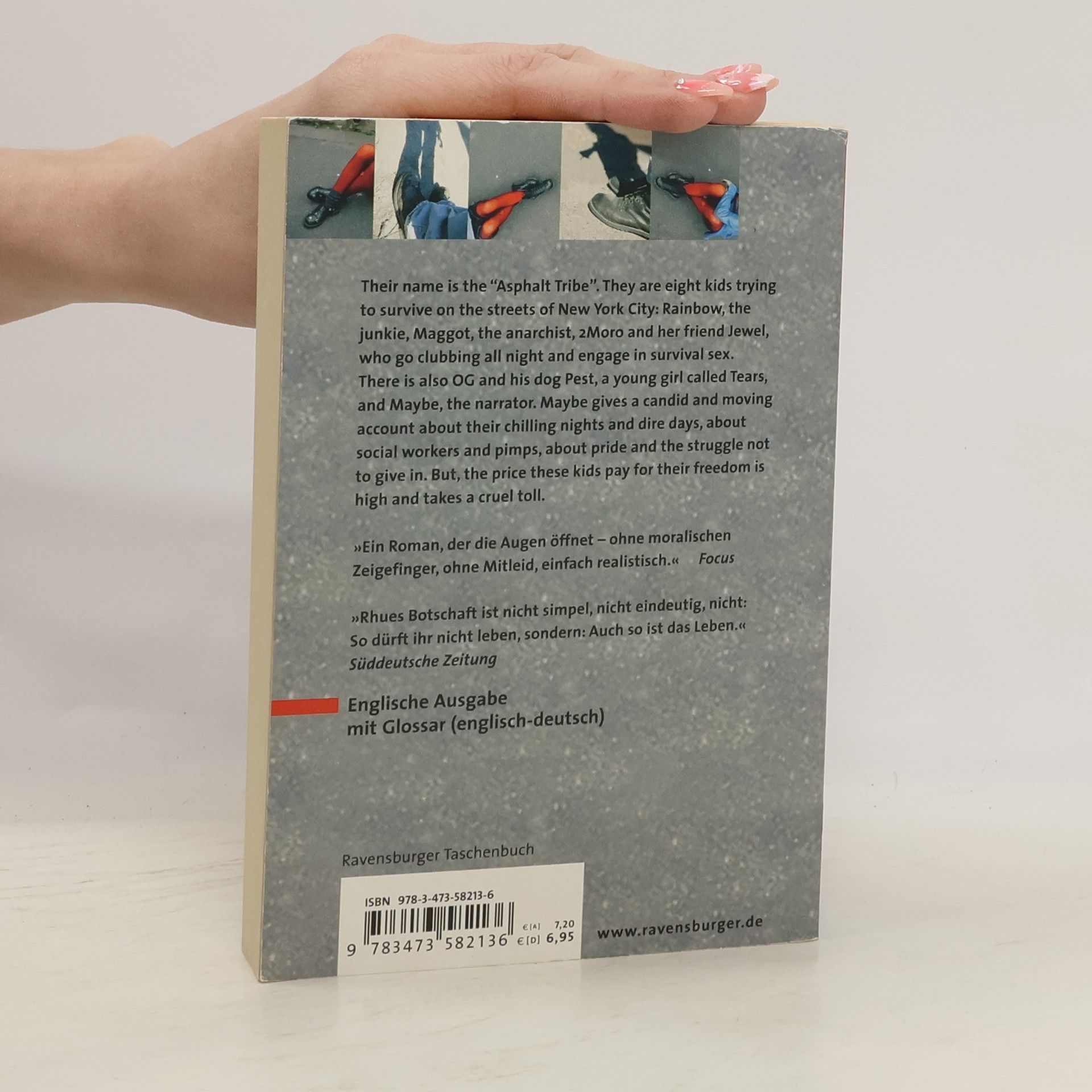 The „Asphalt Tribe“ consists of eight members trying to survive on the streets of New York: Rainbow, who is on the needle, the anarchist Maggot, 2Moro and Jewel, who both earn their living with prostitution, OG and his dog Pest, little Tears and Maybe, the narrator. Maybe talks about the cold, enduring hunger, social workers and pimps, and all the nights they spent dancing followed by days full of sleep. And she talks about pride and humiliation. But the price of freedom is high and requires a deadly toll. Wichtig für den Schulunterricht: Seitenzählung unverändert! Englische Ausgabe mit Glossar.