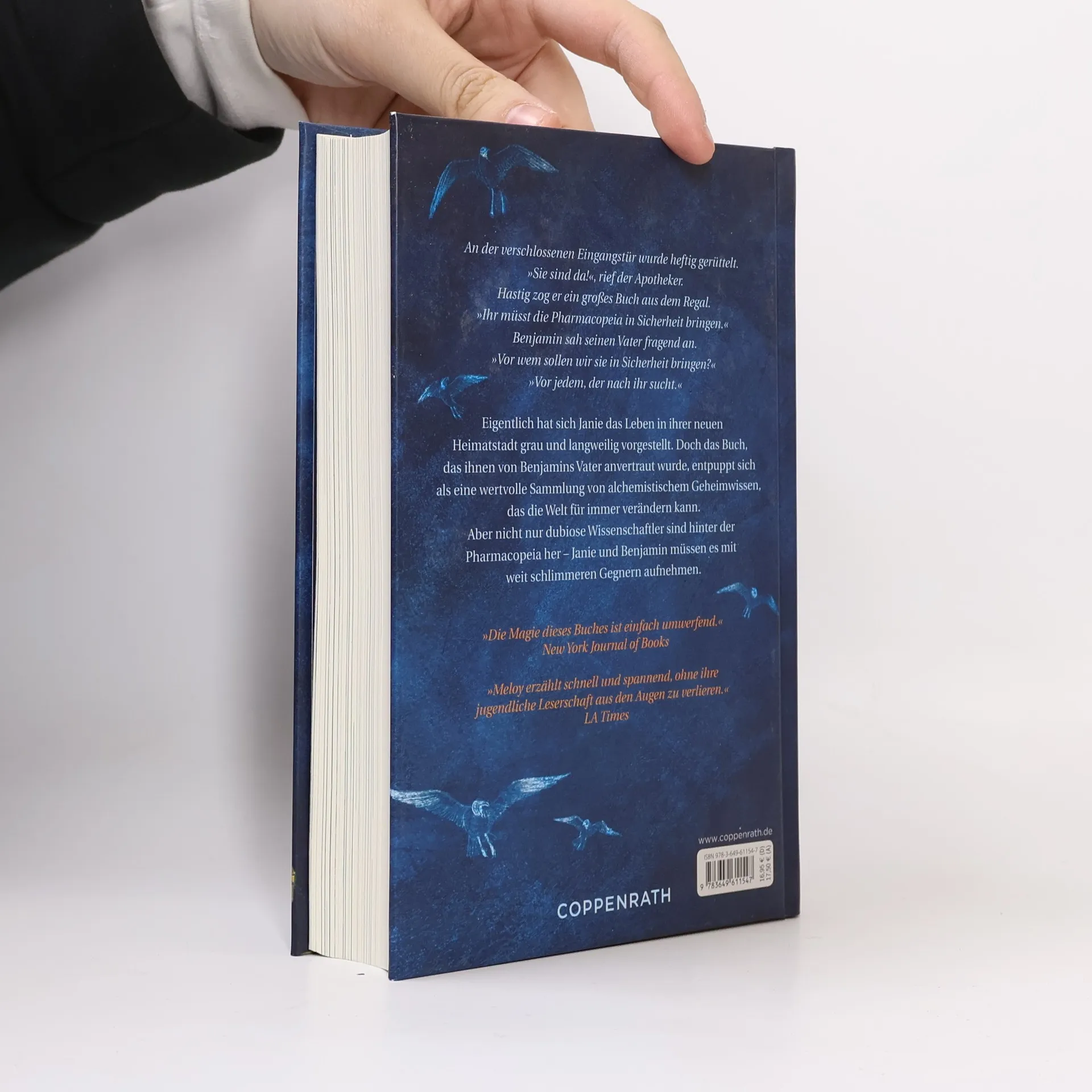 An der verschlossenen Eingangstür wurde heftig gerüttelt. „Sie sind da!“, rief der Apotheker. Hastig zog er ein großes gebundenes Buch aus dem Regal. „Ihr müsst die Pharmacopeia in Sicherheit bringen.“ Benjamin sah seinen Vater fragend an. „Vor wem sollen wir sie in Sicherheit bringen?“ „Vor jedem, der nach ihr sucht.“ Eigentlich hat sich Janie das Leben in ihrer neuen Heimatstadt grau und langweilig vorgestellt. Doch das Buch, das ihnen von Benjamins Vater anvertraut wird, entpuppt sich als eine wertvolle Sammlung von alchemistischem Geheimwissen, das die Welt für immer verändern kann. Aber nicht nur dubiose Wissenschaftler sind hinter der Pharmacopeia her – Janie und Benjamin müssen es mit weit schlimmeren Gegnern aufnehmen.