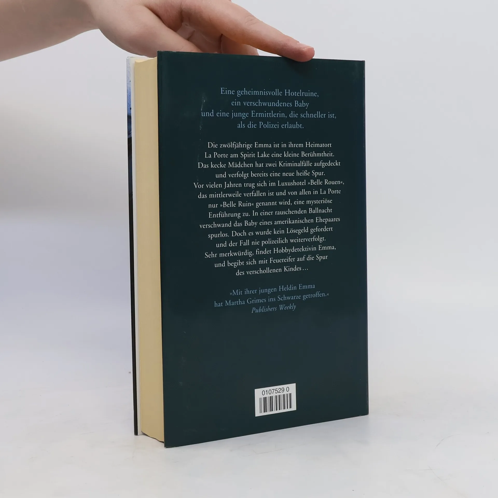 Eine geheimnisvolle Hotelruine, ein verschwundenes Baby und eine junge ErmittlerinDie zwölfjährige Emma ist in ihrem Heimatort La Porte am Spirit Lake eine kleine Berühmtheit. Sie hat zwei Kriminalfälle aufgedeckt und verfolgt bereits eine neue heiße Spur. Vor vielen Jahren verschwand während einer Ballnacht im Luxushotel „Belle Rouen“, das mittlerweile verfallen ist, das Baby eines amerikanischen Ehepaares spurlos. Doch es wurde kein Lösegeld gefordert und der Fall nie polizeilich weiterverfolgt. Sehr merkwürdig, findet Hobbydetektivin Emma, und begibt sich mit Feuereifer auf die Spur des verschollenen Kindes …