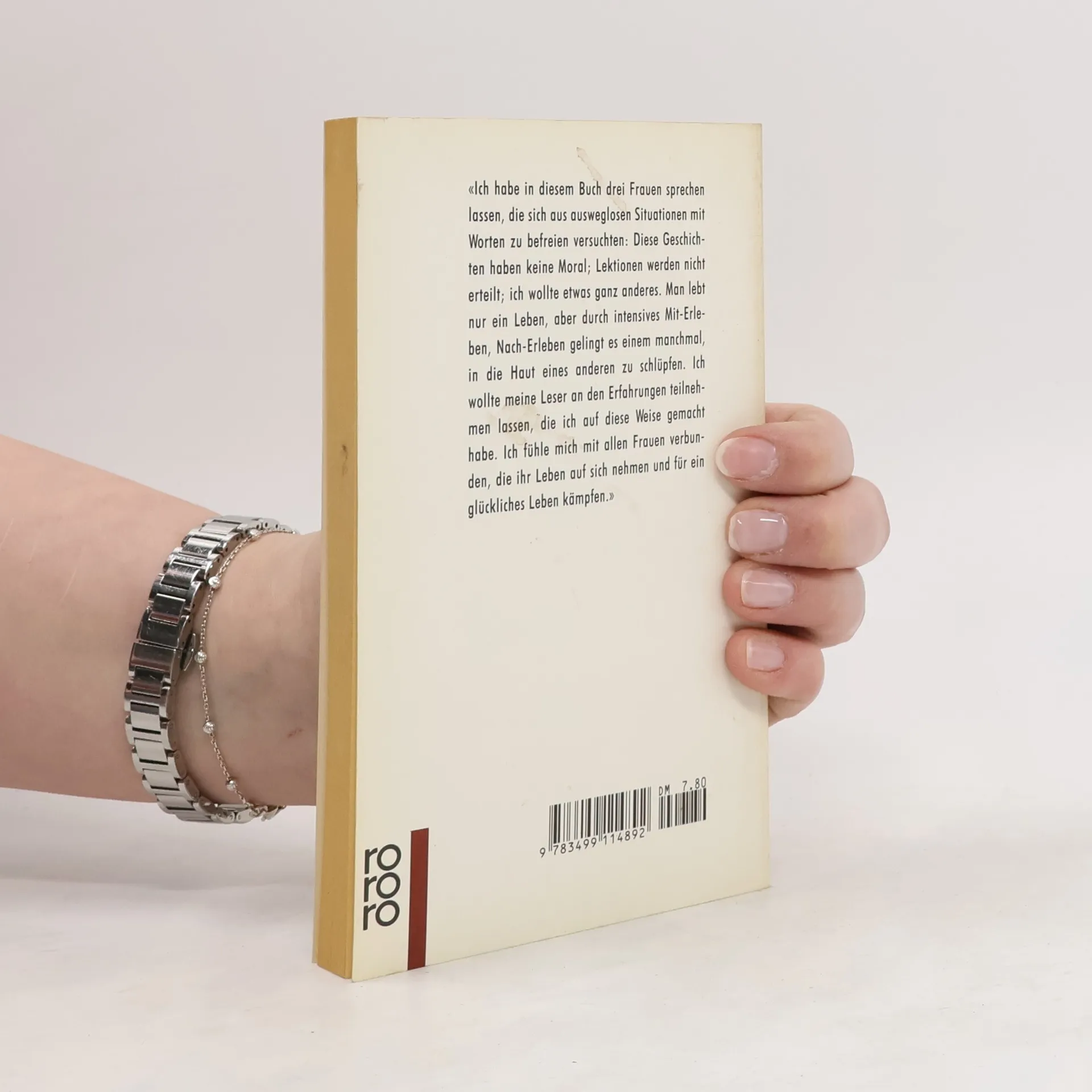 «Ich habe in diesem Buch drei Frauen sprechen lassen, die sich aus ausweglosen Situationen mit Worten zu befreien versuchten: Diese Geschichten haben keine Moral; Lektionen werden nicht erteilt; ich wollte etwas ganz anderes. Man lebt nur ein Leben, aber durch intensives Mit-Erleben, Nach-Erleben gelingt es einem manchmal, in die Haut eines anderen zu schlüpfen. Ich wollte meine Leser an den Erfahrungen teilnehmen lassen, die ich auf diese Weise gemacht habe. Ich fühle mich mit allen Frauen verbunden, die ihr Leben auf sich nehmen und für ein glückliches Leben kämpfen.»