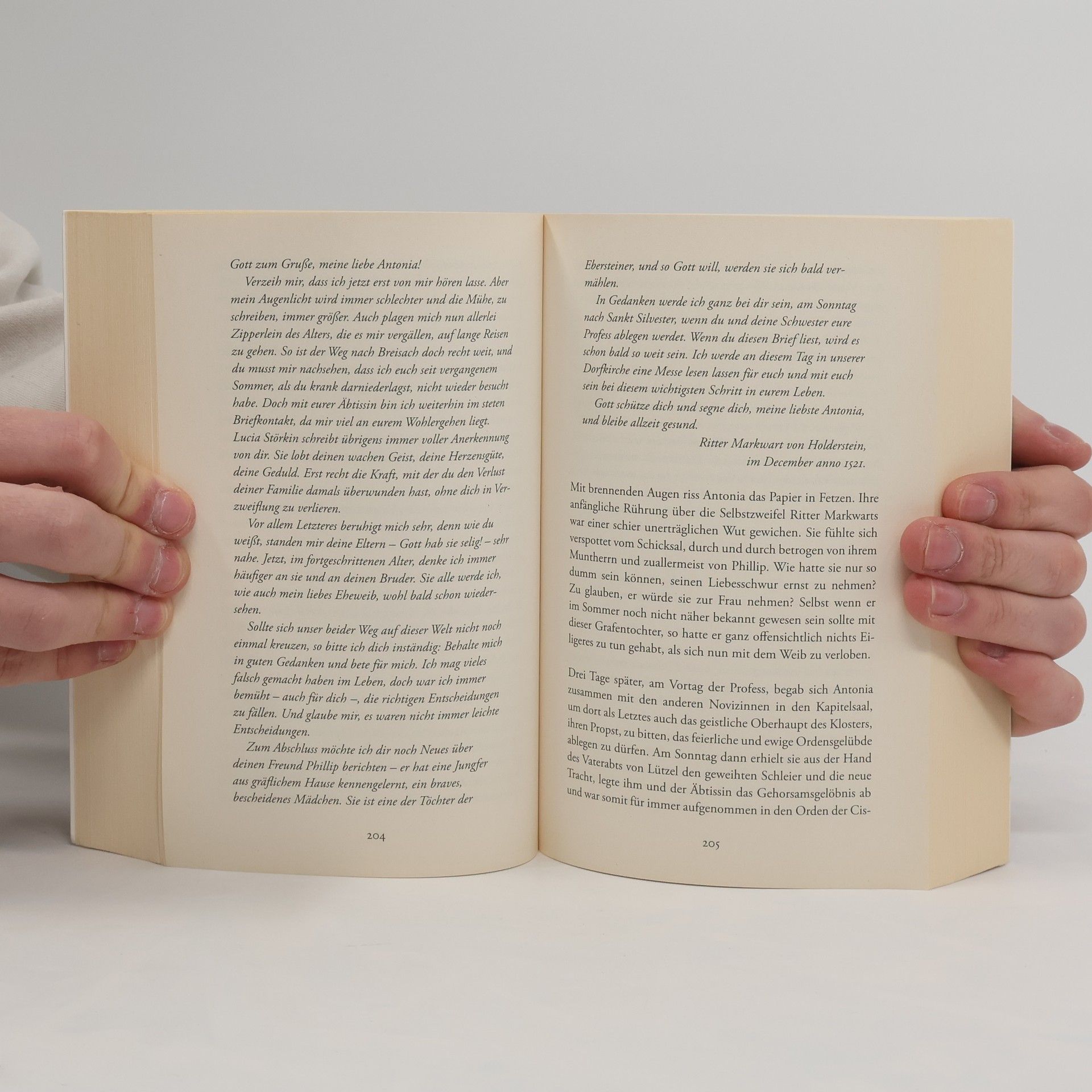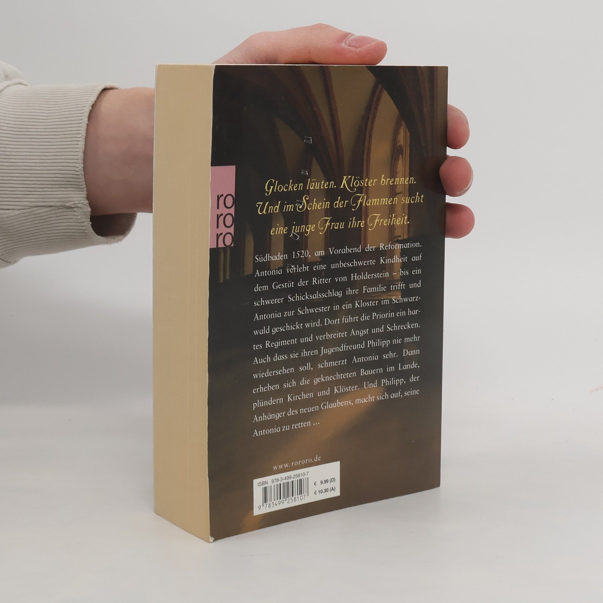 Glocken läuten. Klöster brennen. Und im Schein der Flammen sucht eine junge Frau ihre Freiheit. Südbaden 1520, am Vorabend der Reformation. Antonia verlebt eine unbeschwerte Kindheit auf dem Gestüt der Ritter von Holderstein. Doch dann trifft ein schwerer Schicksalsschlag ihre Familie, und Antonia wird zur Schwester in ein Kloster im Schwarzwald geschickt. Dort führt die Priorin ein hartes Regiment und verbreitet Angst und Schrecken. Auch dass sie ihren Jugendfreund Phillip nie mehr wiedersehen soll, schmerzt Antonia sehr. Dann erheben sich die geknechteten Bauern im Lande, plündern Kirchen und Klöster. Und Philipp, der Anhänger des neuen Glaubens, macht sich auf, seine Antonia zu retten …