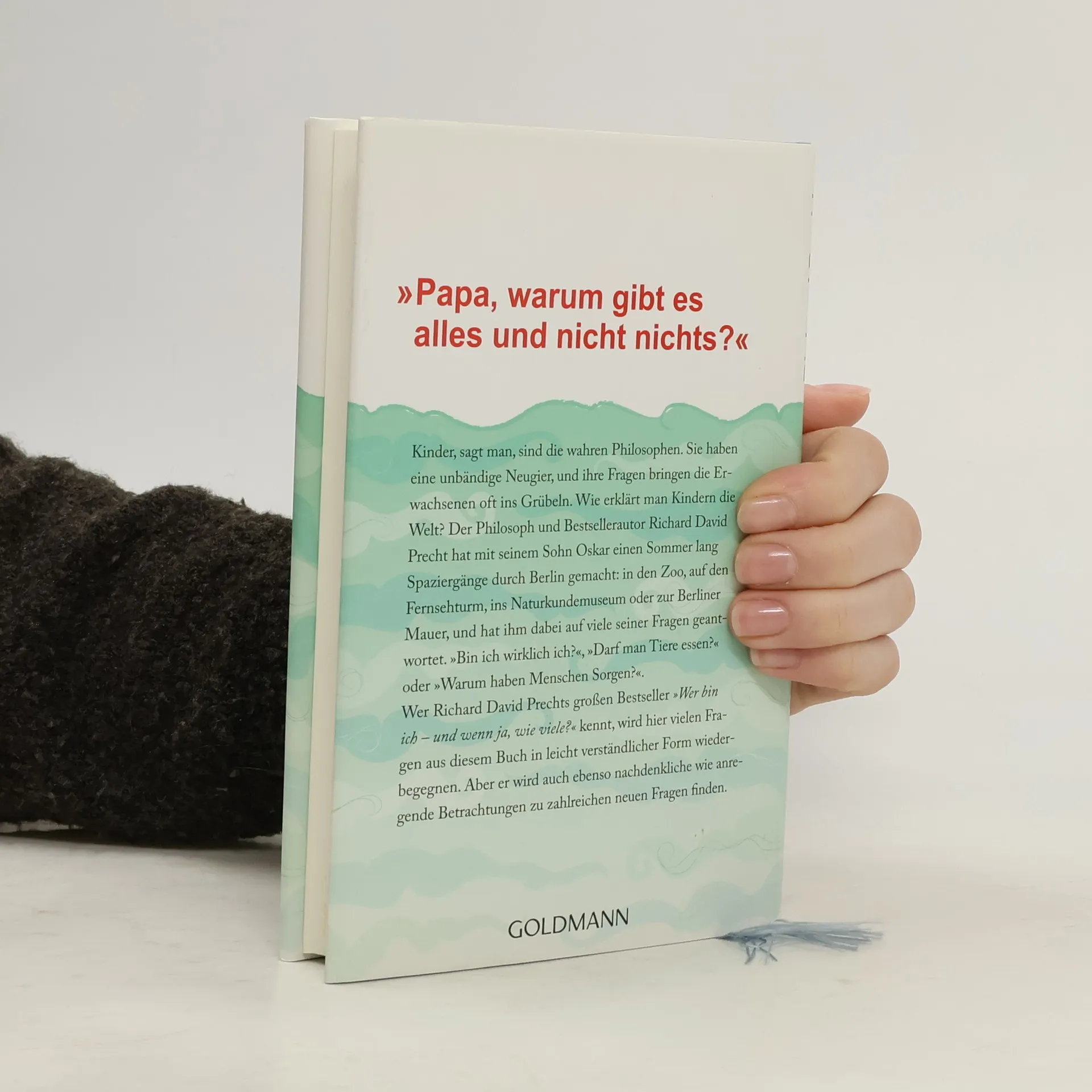 Richard David Precht erklärt seinem Sohn Oskar die Welt Kinder, sagt man, sind die wahren Philosophen. Sie haben eine unbändige Neugier, und ihre Fragen bringen die Erwachsenen oft ins Grübeln. Wie erklärt man Kindern die Welt? Der Philosoph und Bestsellerautor Richard David Precht hat mit seinem Sohn Oskar einen Sommer lang Spaziergänge durch Berlin gemacht: in den Zoo, auf den Fernsehturm, ins Naturkundemuseum oder zur Synagoge, und hat ihm dabei auf viele seiner Fragen geantwortet. „Bin ich wirklich ich?“, „Darf man Tiere essen?“ oder „Warum haben Menschen Sorgen?“. Auf spielerische Art und Weise und mit vielen Geschichten zeigt Precht den Kindern unsere Welt und hilft ihnen, sie besser zu verstehen. Nach „Wer bin ich und wenn ja, wie viele?“ nun das Buch zur Philosophie für alle jungen Menschen, die es genauer wissen wollen!