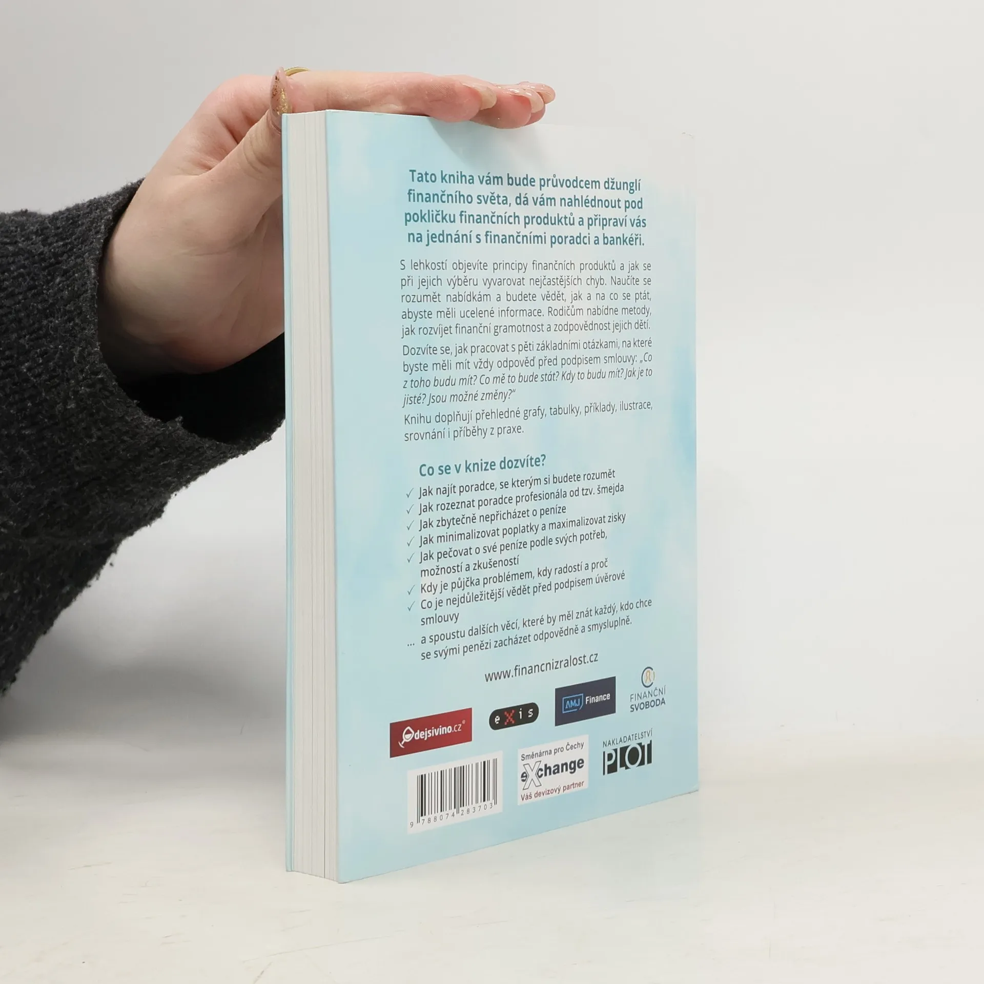 Tato kniha vás provede finančním světem a připraví na jednání s poradci a bankéři. Snadno objevíte principy finančních produktů a naučíte se vyvarovat nejčastějších chyb při jejich výběru. Získáte dovednosti potřebné k porozumění nabídkám a budete vědět, na co se ptát, abyste měli kompletní informace. Rodičům poskytne metody pro rozvoj finanční gramotnosti a zodpovědnosti dětí. Osvojíte si pět základních otázek, které byste měli mít zodpovězené před podpisem smlouvy: „Co z toho budu mít? Co mě to bude stát? Kdy to budu mít? Jak je to jisté? Jsou možné změny?“ Kniha obsahuje přehledné grafy, tabulky, příklady, ilustrace a příběhy z praxe. Dozvíte se, jak najít vhodného poradce, rozlišit profesionála od šmejda, minimalizovat poplatky a maximalizovat zisky. Naučíte se, jak pečovat o své finance podle svých potřeb a zkušeností, a kdy je půjčka problémem či radostí. Získáte také klíčové informace před podpisem úvěrové smlouvy. Vladimír Pikora, makroekonom, chválí knihu jako jednoduše psanou a plnou cenných rad z praxe, které vám pomohou připravit se na schůzky s poradci a odhalit strategie, které mohou použít.