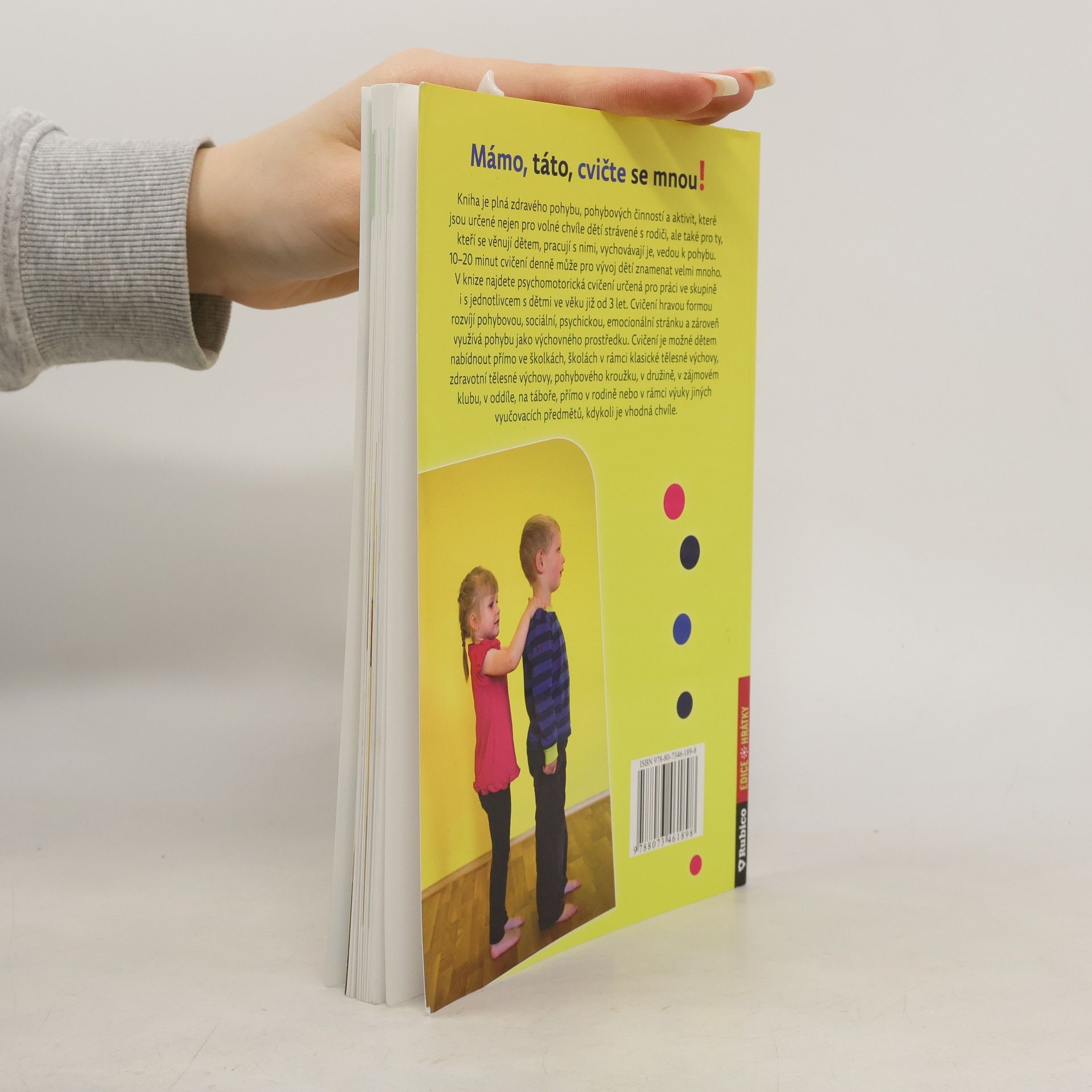 Kniha je plná zdravého pohybu, pohybových činností a aktivit, které jsou určené nejen pro volné chvíle dětí strávené s rodiči, ale také pro ty, kteří se věnují dětem, pracují s nimi, vychovávají je, vedou k pohybu. 10–20 minut cvičení denně může pro vývoj dětí znamenat velmi mnoho. V knize najdete psychomotorická cvičení určená pro práci ve skupině i s jednotlivcem s dětmi ve věku již od 3 let. Cvičení hravou formou rozvíjí pohybovou, sociální, psychickou, emocionální stránku a zároveň využívají pohybu jako výchovného prostředku. Cvičení je možné dětem nabídnout přímo ve školkách, školách v rámci klasické tělesné výchovy, zdravotní tělesné výchovy, pohybového kroužku, v družině, v zájmovém klubu, v oddíle, na táboře, přímo v rodině nebo v rámci výuky jiných vyučovacích předmětů, kdykoli je vhodná chvíle.