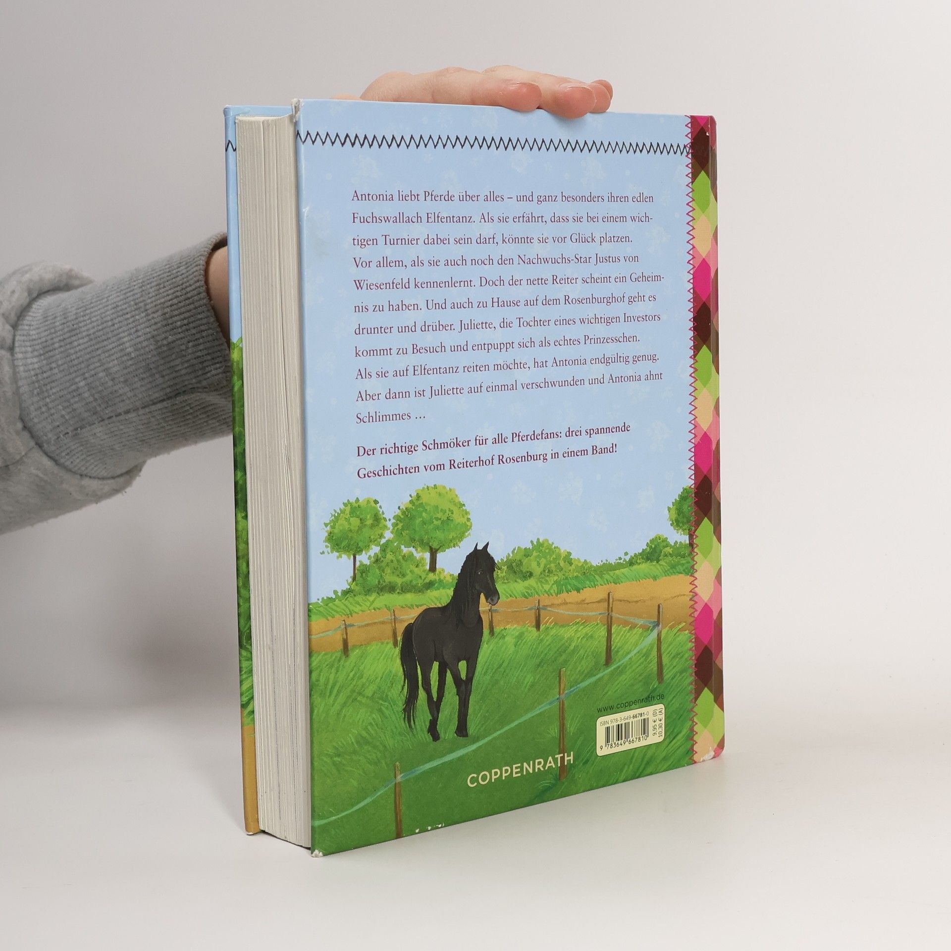 Antonia liebt Pferde über alles – und ganz besonders ihren edlen Fuchswallach Elfentanz. Als sie erfährt, dass sie bei dem weltbekannten Turnier in Moritzstadt dabei sein darf, könnte sie vor Glück platzen. Vor allem, als sie auch noch den Nachwuchs-Star Justus von Wiesenfeld kennenlernt. Doch warum geht bei dem netten Reiter plötzlich alles schief? Verbirgt er etwa ein Geheimnis? Und auch zu Hause auf dem Rosenburghof geht es drunter und drüber. Die Tochter eines wichtigen Investors kommt zu Besuch und entpuppt sich als echtes Prinzesschen. Als die hochnäsige Juliette auf Elfentanz reiten möchte, hat Antonia endgültig genug. Aber dann ist Juliette auf einmal verschwunden und Antonia ahnt, dass etwas Schlimmes passiert sein muss.