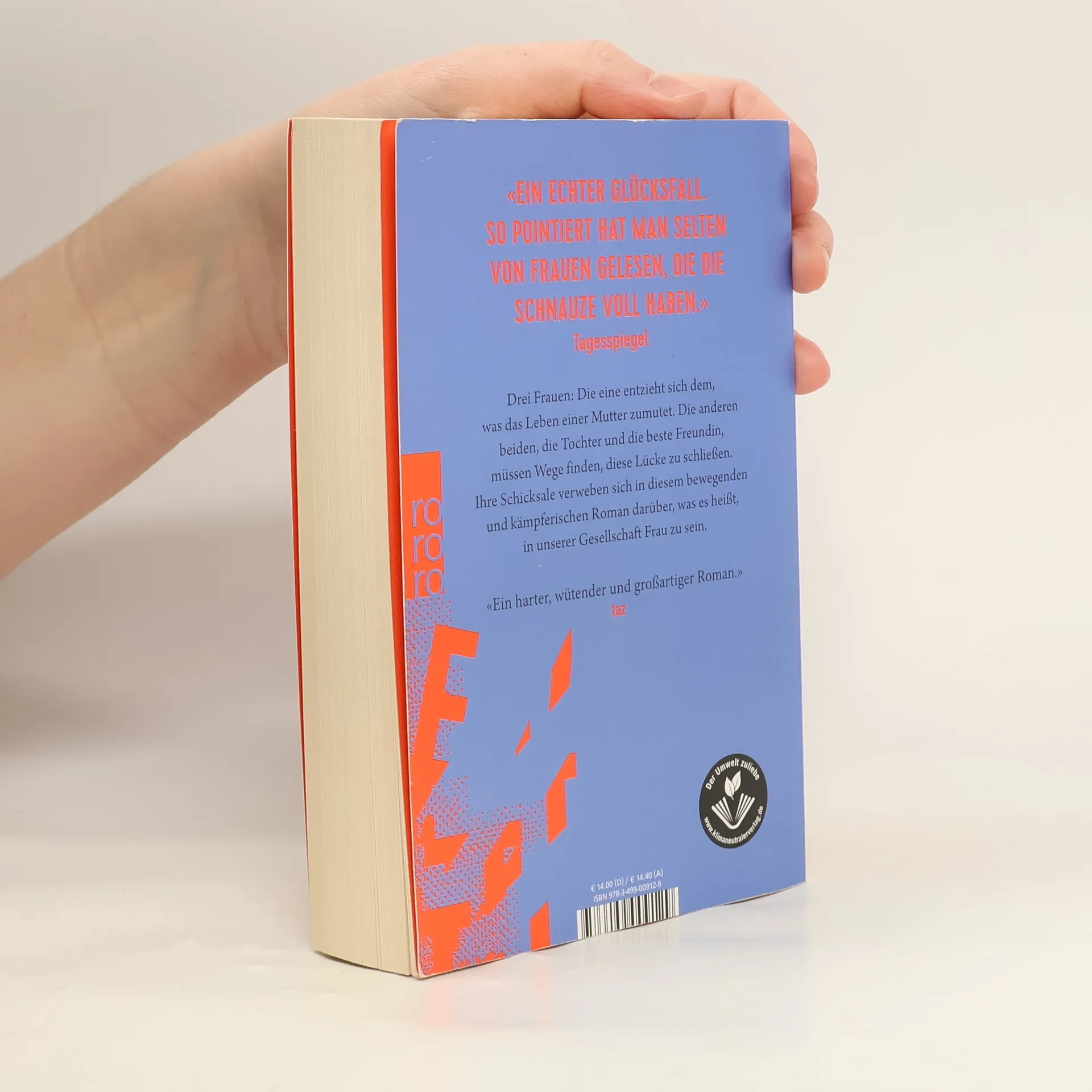 Mareike Fallwickl skizziert diesem feministischen Roman auf drastische Weise, was geschieht, wenn eine erschöpfte Mutter aufgibt, beschreibt die Lücken, die sie hinterlässt und die weibliche Wut, die bleibt. Sie seziert Tabuthemen, veraltete Rollenbilder und legt den Finger in die klaffenden Wunden unserer Gesellschaft. Helene, Mutter von drei Kindern, steht beim Abendessen auf, geht zum Balkon und stürzt sich ohne ein Wort in den Tod. Die Familie ist im Schockzustand. Plötzlich fehlt ihnen alles, was sie bisher zusammengehalten hat: Liebe, Fürsorge, Sicherheit. Helenes beste Freundin Sarah, die Helene ihrer Familie wegen zugleich beneidet und bemitleidet hat, wird in den Strudel der Trauer und des Chaos gezogen. Lola, die älteste Tochter von Helene, sucht nach einer Möglichkeit, mit ihren Emotionen fertigzuwerden, und konzentriert sich auf das Gefühl, das am stärksten ist: Wut.