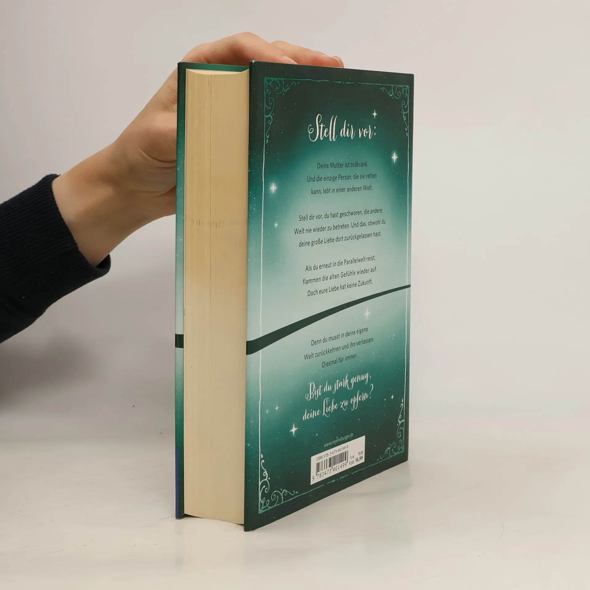 Stell dir vor: Deine Mutter ist todkrank. Und die einzige Person, die sie retten kann, lebt in einer anderen Welt. Stell dir vor, du hast geschworen, die andere Welt nie wieder zu betreten. Und das, obwohl du deine große Liebe dort zurückgelassen hast. Nun musst du erneut in die Parallelwelt reisen. Als du IHM gegenüberstehst, flammen die alten Gefühle wieder auf. Doch eure Liebe hat keine Zukunft. Denn um deine Mutter zu retten, musst du in deine eigene Welt zurückkehren und ihn verlassen. Diesmal für immer. Bist du stark genug, deine Liebe zu opfern? Ve steht vor einer schweren Entscheidung. Eigentlich sollte das Portal zwischen den Parallelwelten für immer geschlossen bleiben und eigentlich dürfte Ve ihre große Liebe Finn nie wiedersehen. Doch nun hat sie keine andere Wahl, als erneut in die andere Welt zu reisen. Denn ihre Mutter ist schwer erkrankt und wird sterben, wenn ihre Doppelgängerin ihr nicht hilft. Ve ahnt nicht, wie sehr sich das Paralleluniversum seit ihrem letzten Besuch verändert hat. Finn hat inzwischen eine neue Freundin. Als er und Ve sich wiedersehen, können sie ihre Gefühle füreinander nicht ignorieren. Doch sie wissen beide, dass ihre Liebe keine Zukunft hat …