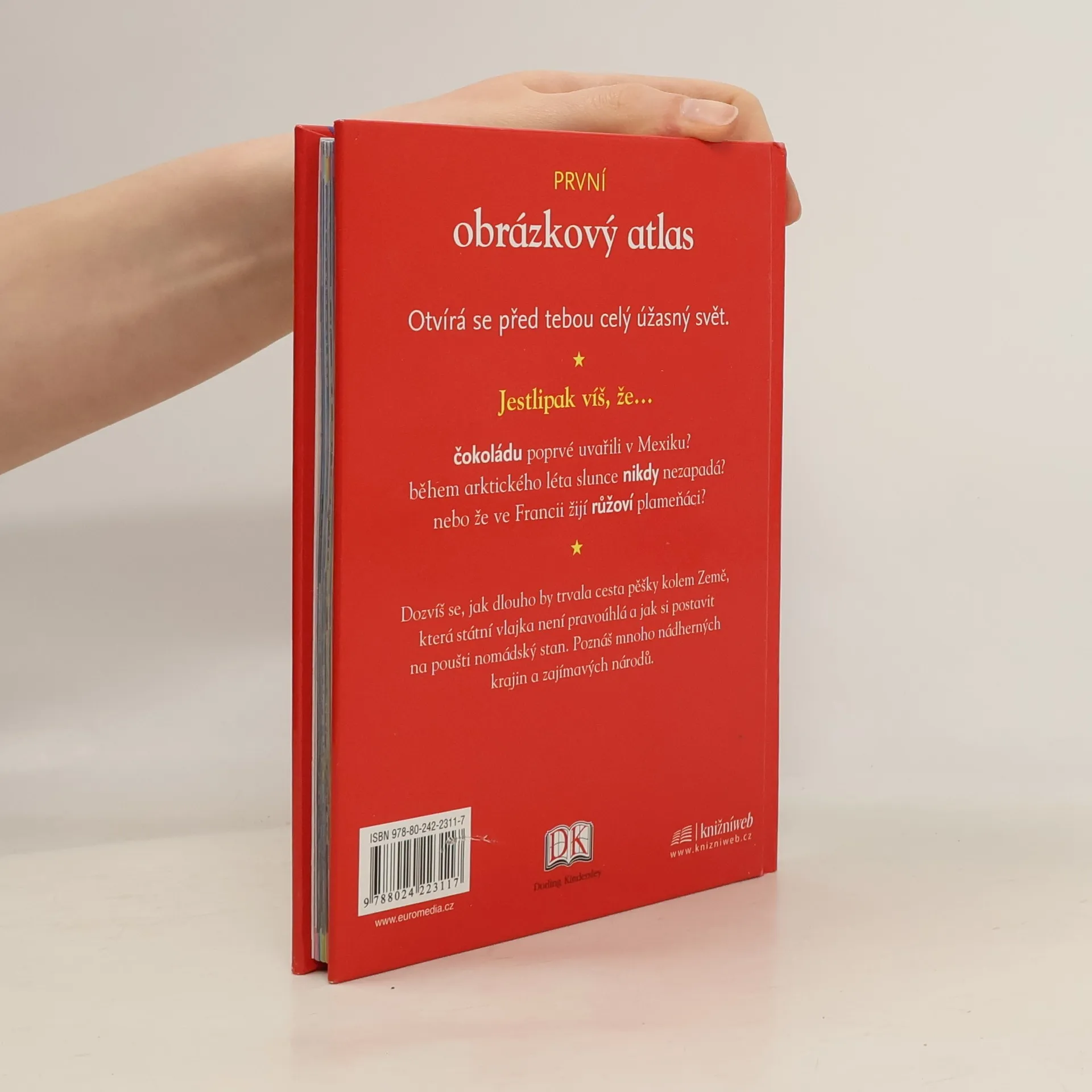 dětský obrázkový atlas zemí celého světa, dozvíte se např., kde se poprvé vařila čokoláda, jak dlouho by trvala cesta pěšky kolem Země, která státní vlajka není pravoúhlá a jak si postavit na poušti nomádský stan, poznáte mnoho nádherných krajin a zajímavých národů