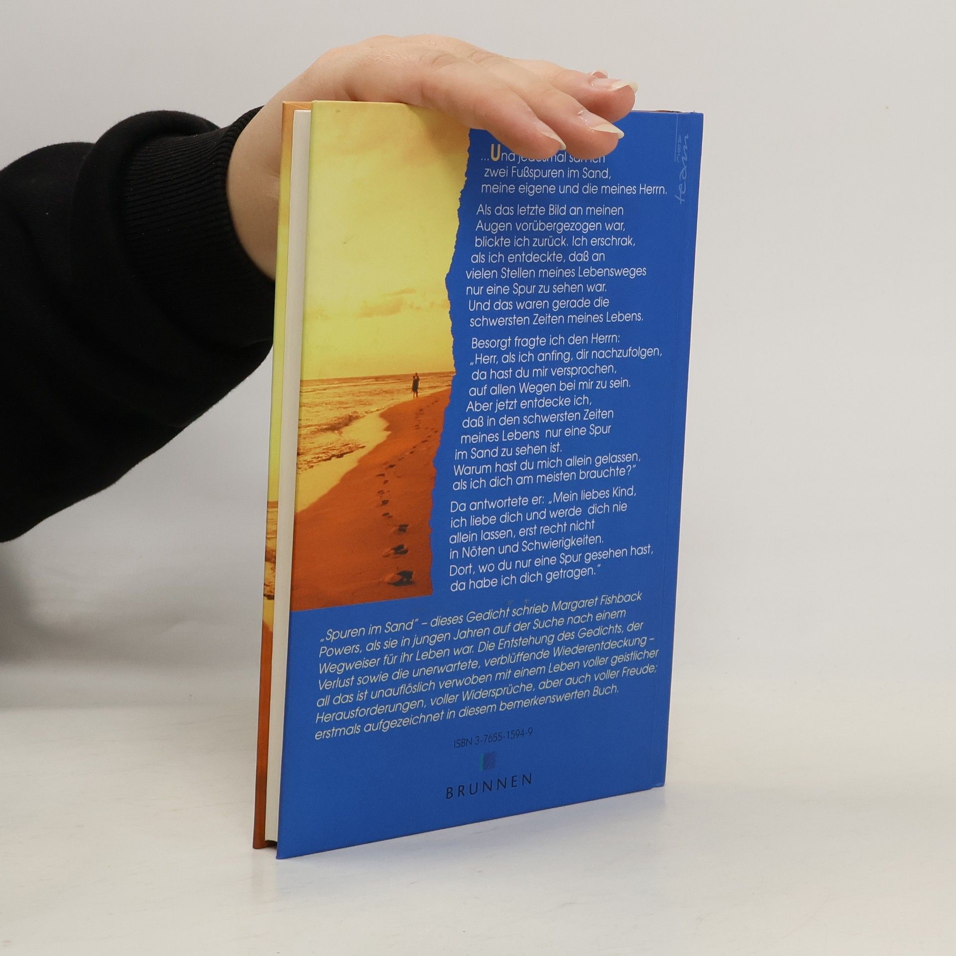 Dieses Gedicht schrieb M. Fishback Powers in einer tiefen Lebenskrise. Bevor sie an Gott und der Welt verzweifelt, bekommt sie die Antwort: „Mein liebes Kind, ich liebe dich und werde dich nie allein lassen, erst recht nicht in Nöten und Schwierigkeiten. Dort, wo du nur eine Spur gesehen hast, da habe ich dich getragen.“" Lesen Sie hier das Gedicht und seine Geschichte: Die Entstehung des Gedichts, der Verlust sowie die unerwartete Wiederentdeckung - als das ist unauflöslich verwoben mit einem Leben voller geistlicher Herausforderungen, voller Widersprüche, aber auch voller Freude.