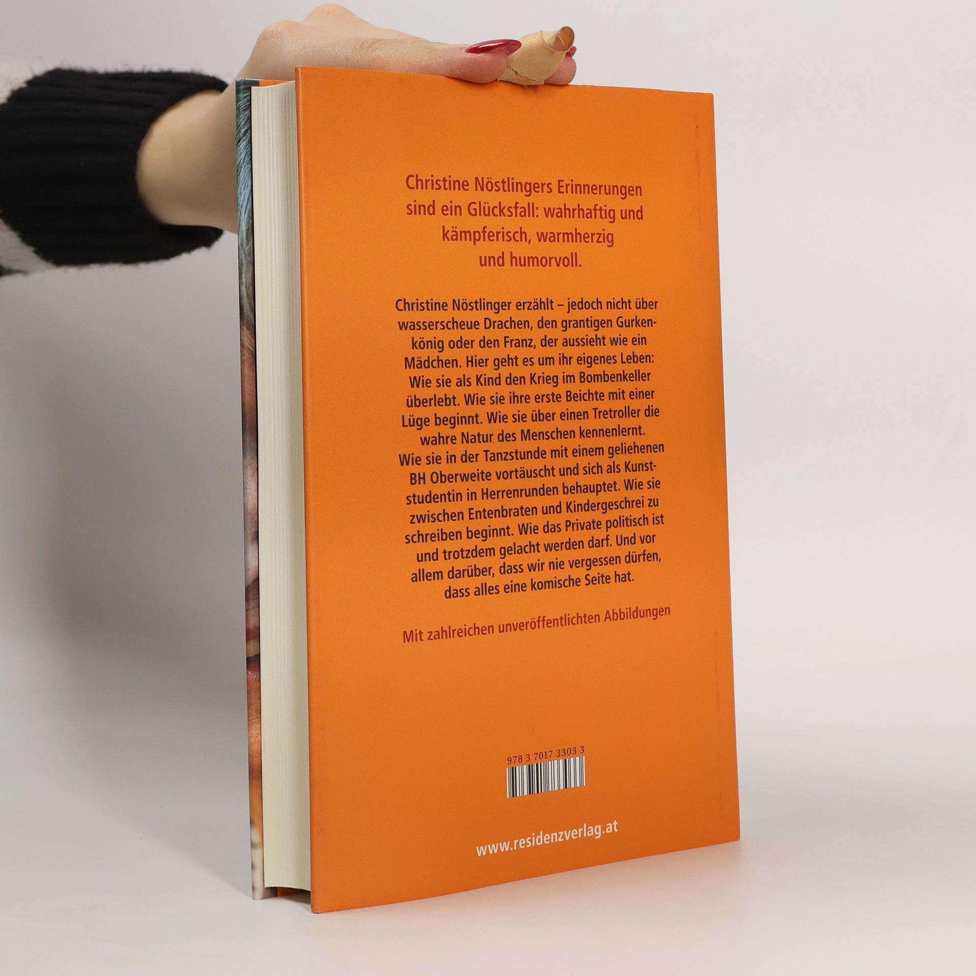 Christine Nöstlinger erzählt – jedoch nicht über den grantigen Gurkenkönig oder den Franz, der aussieht wie ein Mädchen. Hier geht es um ihr eigenes Leben: Wie sie als Kind den Krieg im Bombenkeller überlebt. Wie sie ihre erste Beichte mit einer Lüge beginnt. Wie sie über einen Tretroller die wahre Natur des Menschen kennenlernt. Wie sie im Tanzkurs den geliehenen BH verliert und sich als Kunststudentin in Herrenrunden behauptet. Die große Kinderbuchautorin, Journalistin, Lyrikerin und Schriftstellerin erzählt von Ehen, Töchtern und Affären. Von ihren Erfolgen, von wütenden Lehrerattacken und aberwitzigen Political-Correctness-Sheriffs. Und auch davon, ob es erstrebenswert ist, in Würde zu altern.