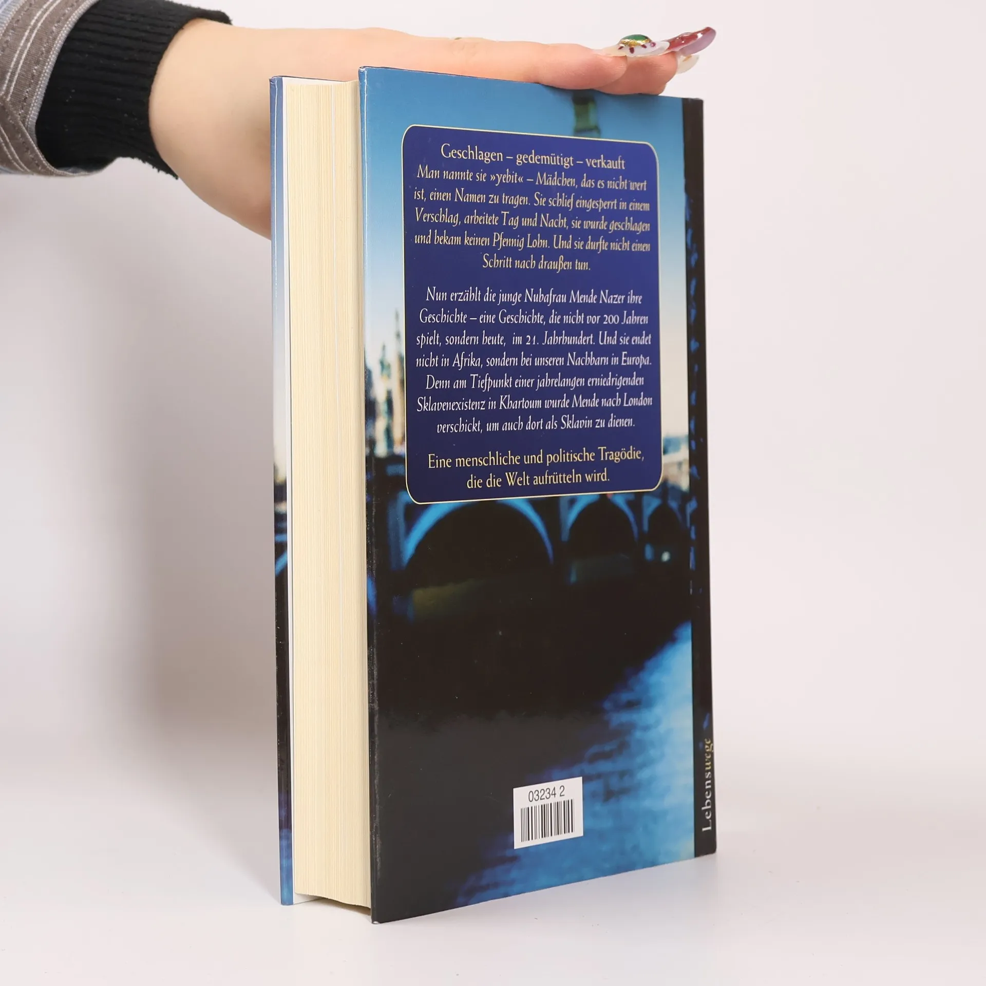 „Als Kind hatte ich nicht einen Tag ohne Liebe und Zuwendung erlebt. Doch dann, nach all den Jahren, hatte Salma mich komplett zerstört, jedes Gefühl für mein eigenes Selbst. Ich glaubte, dass ich ihre Sklavin war und sie meine Herrin. Ich glaubte an ihre absolute Kontrolle über mich. Ich glaubte, sie hätte die Macht über Leben und Tod.“ Man nannte sie „yebit“ - das arabische Wort für jemand, der es nicht wert ist, einen Namen zu tragen. Sie schlief eingesperrt in einem Verschlag, sie arbeitete Tag und Nacht, sie wurde geschlagen und bekam keinen Pfennig Lohn. Und das Schlimmste: Sie durfte nicht einen Schritt nach draußen tun... Dies ist die Geschichte der jungen Nubafrau Mende Nazer, die nicht etwa vor 200 Jahren spielt, sondern heute, im 21. Jahrhundert. Mendes Geschichte ist durchaus kein Einzelfall. Und sie endet nicht im tiefen Afrika, sondern bei unseren Nachbarn in Europa: Denn am Tiefpunkt einer jahrelangen erniedrigenden Sklavenexistenz in Khartoum wird Mende nach England verschickt - als Sklavin der sudanesischen Botschafterfamilie in London... “Mit ihrer Geschichte hat Mende die Qualen all unserer afrikanischen Schwestern sichtbar gemacht und ihnen dringend notwendige Aufmerksamkeit verschafft. Und bei allem, was Mende durchgemacht hat, sind ihre Kraft und ihre Schönheit ungebrochen.“ Waris Dirie
