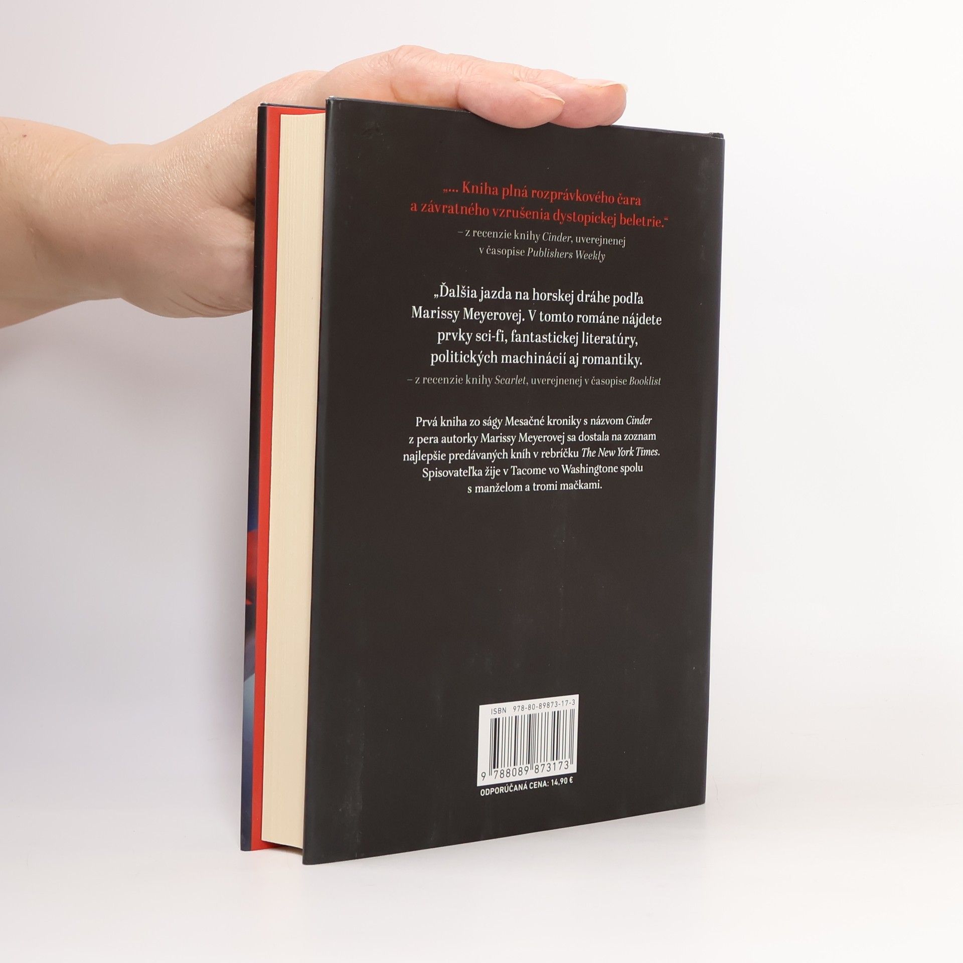 Kyborské dievča Cinder sa vracia v druhej napínavej časti úspešnej ságy Mesačné kroniky. Mladá opravárka sa snaží dostať z väzenia – hoci ak sa jej to podarí, stane sa najhľadanejšou utečenkou v celom Spoločenstve. Na druhom konci sveta sa stratila stará mama Scarlet Benoitovej. Keď sa Scarlet zoznámi s Vlkom, pouličny´m zápasníkom, ktory´ by mohol vedieť, kde sa nachádza jej babka, zdráha sa cudzincovi dôverovať, no čosi ju k nemu nevysvetliteľne priťahuje – rovnako ako jeho k nej. Na ceste za riešením jednej záhady sa Scarlet s Vlkom stretnú s ďalšou, keď natrafia na Cinder. Teraz sa všetci traja musia mať na pozore pred zlomyseľnou mesačnou kráľovnou Levanou. Tá totiž urobí čokoľvek, aby sa pekny´ princ Kai stal jej manželom, kráľom i väzňom.