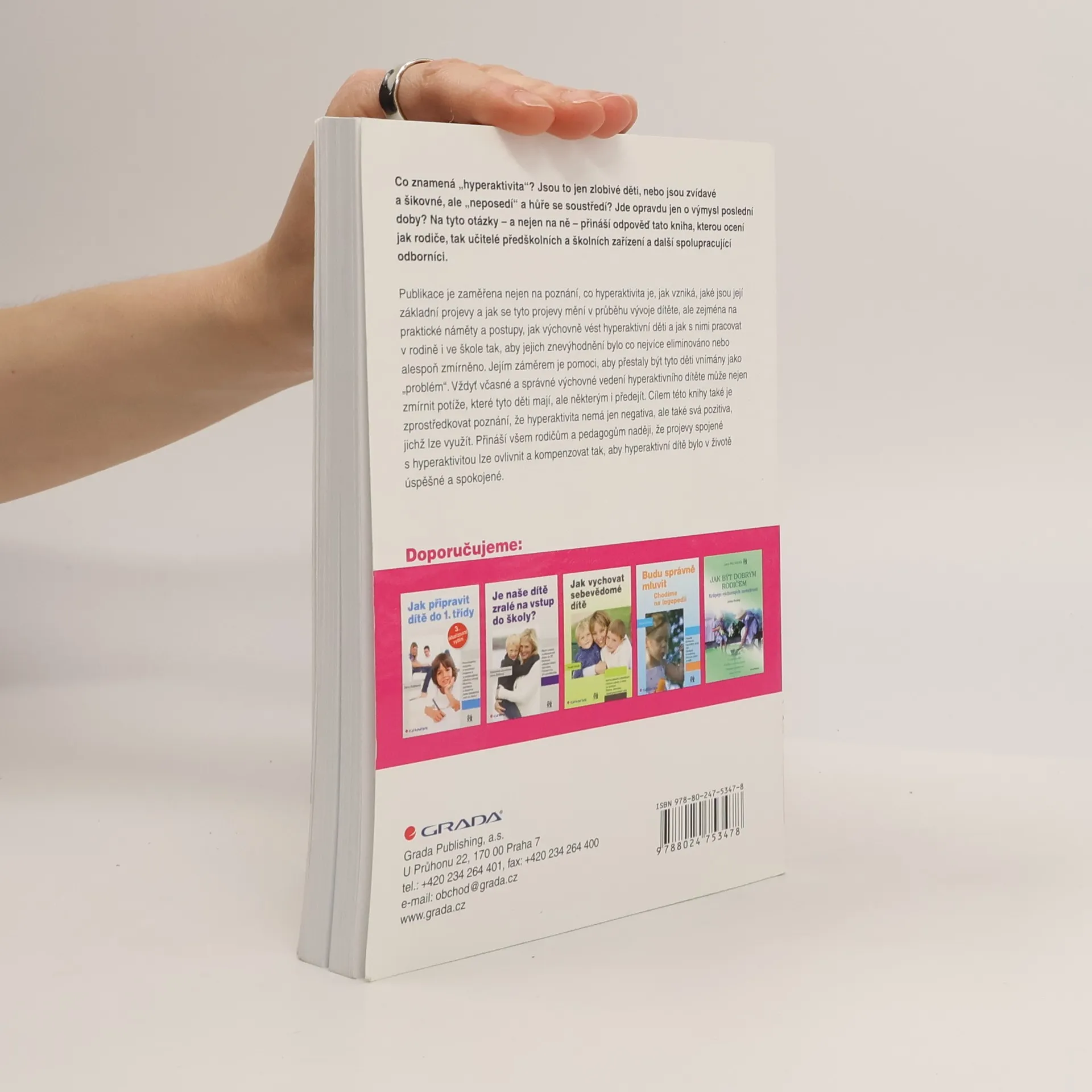 Publikace je zaměřena nejen na poznání, co hyperaktivita je, jak vzniká, jaké jsou její základní projevy a jak se tyto projevy mění v průběhu vývoje dítěte, ale zejména na praktické náměty a postupy, jak výchovně vést hyperaktivní děti a jak s nimi pracovat v rodině i ve škole tak, aby jejich znevýhodnění bylo co nejvíce eliminováno nebo alespoň zmírněno. Jejím záměrem je pomoci, aby přestaly být tyto děti vnímány jako „problém“. Vždyť včasné a správné výchovné vedení hyperaktivního dítěte může nejen zmírnit potíže, které tyto děti mají, ale některým i předejít. Cílem této knihy také je zprostředkovat poznání, že hyperaktivita nemá jen negativa, ale také svá pozitiva, jichž lze využít. Přináší všem rodičům a pedagogům naději, že projevy spojené s hyperaktivitou lze ovlivnit a kompenzovat tak, aby hyperaktivní dítě bylo v životě úspěšné a spokojené.