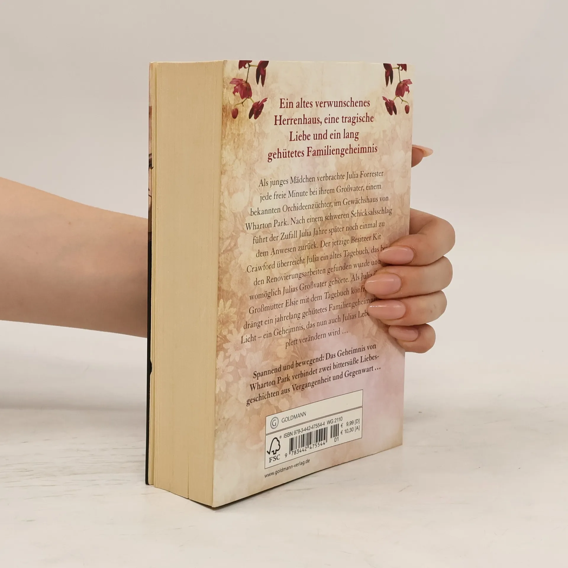 Jedes Haus hat sein Geheimnis. Und jede Liebe ihren Preis Als junges Mädchen verbrachte Julia Forrester jede freie Minute bei ihrem Großvater, einem bekannten Orchideenzüchter, im Gewächshaus von Wharton Park. Nach einem schweren Schicksalsschlag führt der Zufall Julia Jahre später noch einmal zu dem Anwesen zurück. Der jetzige Besitzer Kit Crawford überreicht ihr ein altes Tagebuch, das bei den Renovierungsarbeiten gefunden wurde und womöglich Julias Großvater gehörte. Als Julia ihre Großmutter Elsie mit dem Tagebuch konfrontiert, drängt ein jahrelang gehütetes Familiengeheimnis ans Licht, das auch Julias Leben komplett verändern wird …