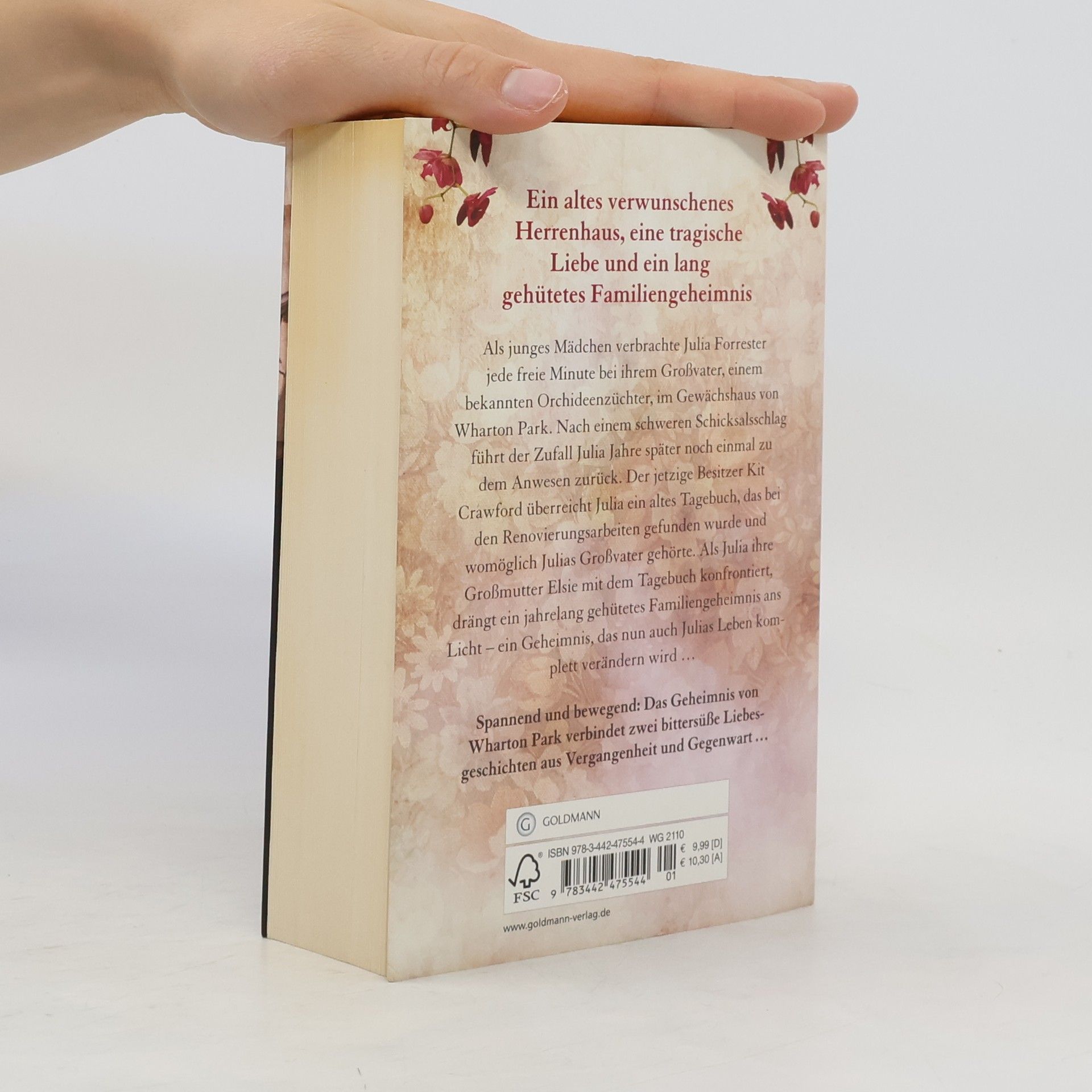 Jedes Haus hat sein Geheimnis. Und jede Liebe ihren Preis Als junges Mädchen verbrachte Julia Forrester jede freie Minute bei ihrem Großvater, einem bekannten Orchideenzüchter, im Gewächshaus von Wharton Park. Nach einem schweren Schicksalsschlag führt der Zufall Julia Jahre später noch einmal zu dem Anwesen zurück. Der jetzige Besitzer Kit Crawford überreicht ihr ein altes Tagebuch, das bei den Renovierungsarbeiten gefunden wurde und womöglich Julias Großvater gehörte. Als Julia ihre Großmutter Elsie mit dem Tagebuch konfrontiert, drängt ein jahrelang gehütetes Familiengeheimnis ans Licht, das auch Julias Leben komplett verändern wird …