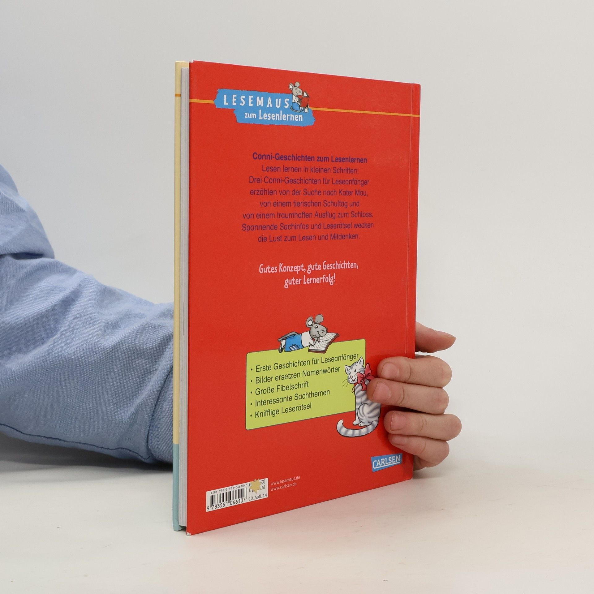 Lesen lernen in kleinen Schritten! Drei Conni-Geschichten für Leseanfänger erzählen von der Suche nach Kater Mau, von einem tierischen Schultag und von einem traumhaften Ausflug zum Schloss. Spannende Sachinfos und Leserätsel wecken die Lust zum Lesen und Mitdenken. Enthält folgende Geschichten: Conni sucht Kater Mau, Conni und die Schule voller Tiere, Conni und die Prinzessin. *** LESEMAUS zum LESENLERNEN – die Reihe für Erstleser! *** Spannende und leichte Geschichten für Jungs und Mädchen, lustige Leserätsel und kindgerechte Sachinfos motivieren Leseanfänger zum Weiterlesen und Mitdenken.