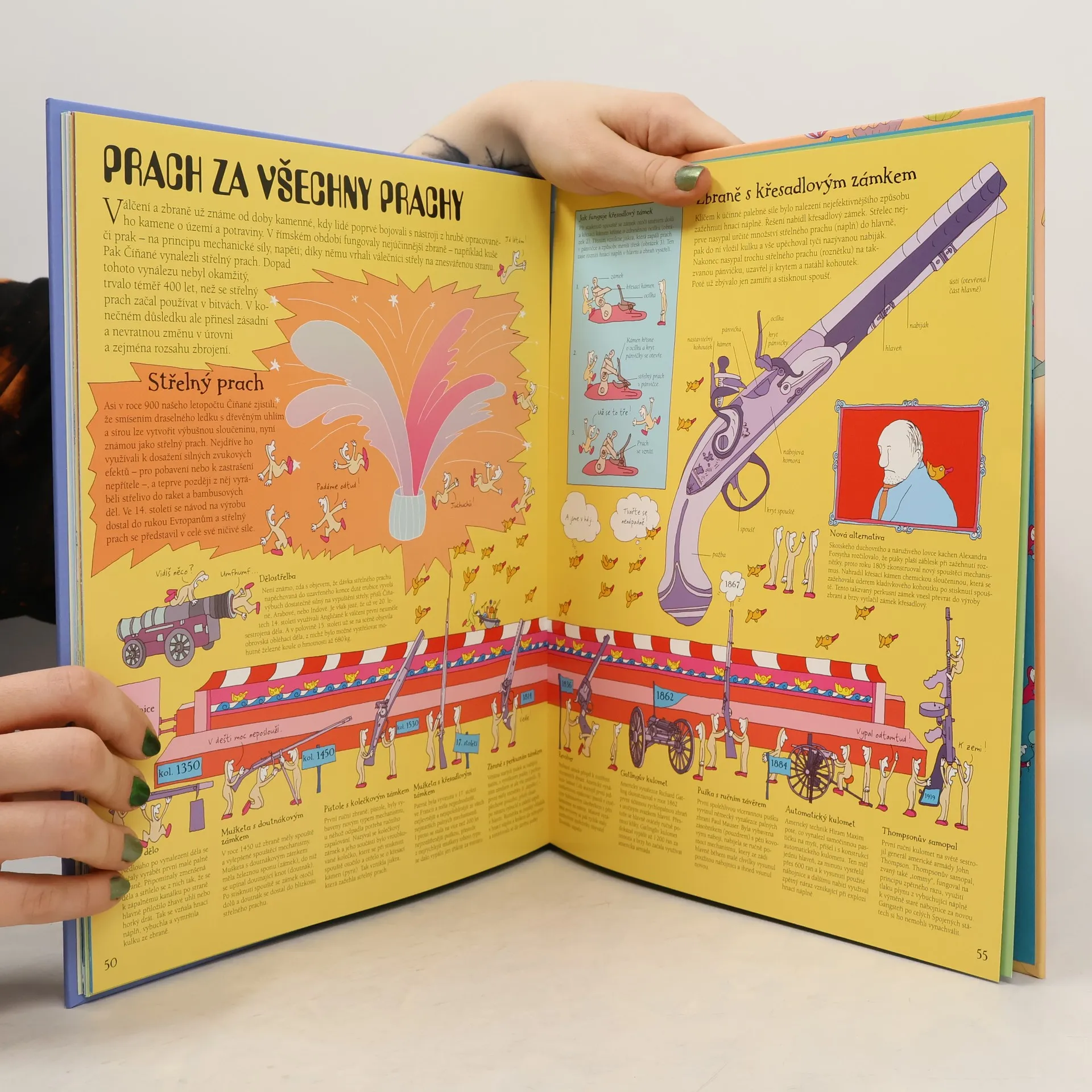 Zvídaví Koumáci, malí chlapíci s velkými nápady, nabízejí dětem poutavou výpravu za vynálezy, které změnily lidem život. Pomocí podrobných popisů, názorných obrázků a vtipných komentářů představují klíčové vynálezy, průlomové myšlenky a všechno, co z nich vzešlo. V knize se netradiční formou seznámíte s třemi stovkami vynálezů, které změnily svět. Na rozkládacích stránkách se vám před očima rozvinou celé dějiny lidského důvtipu.