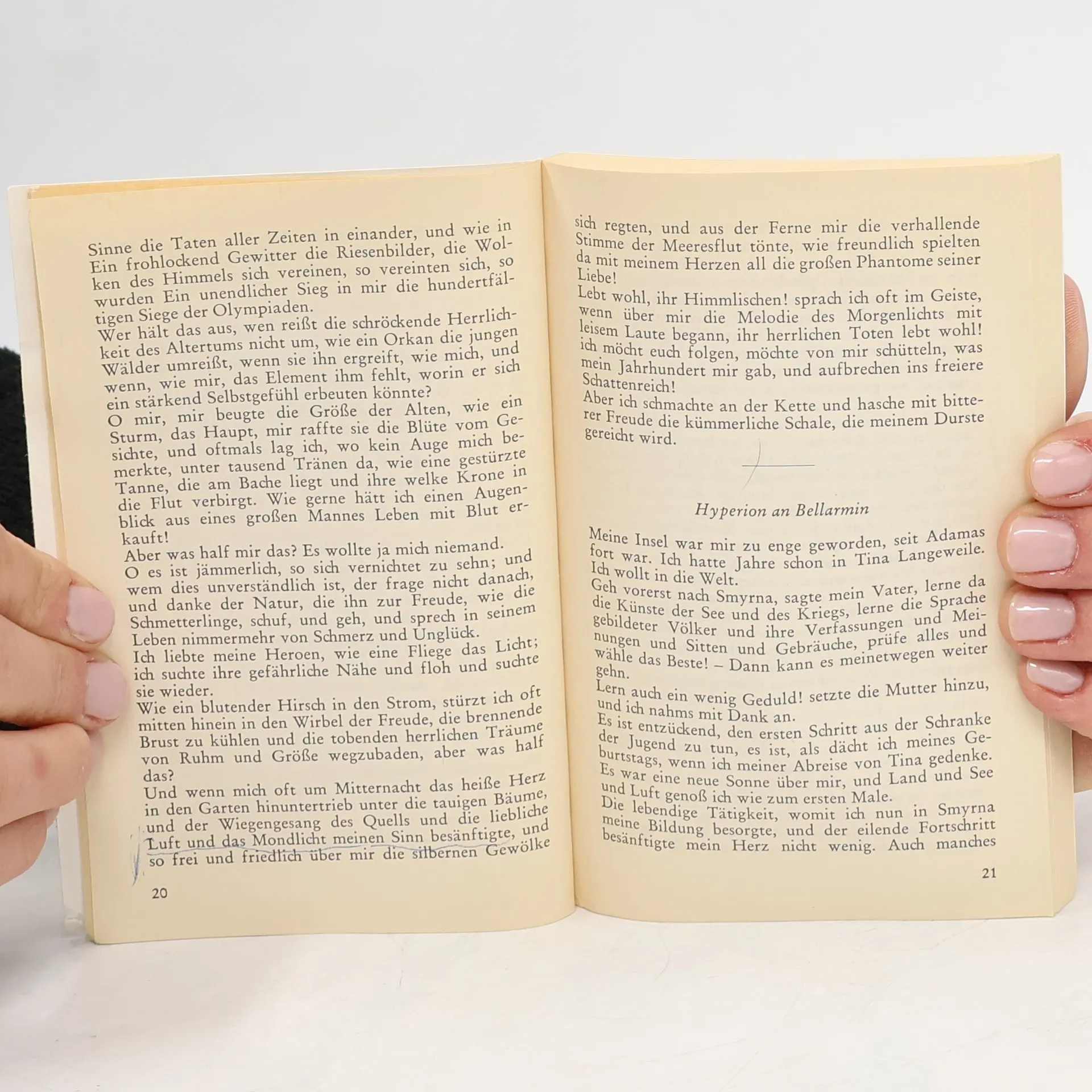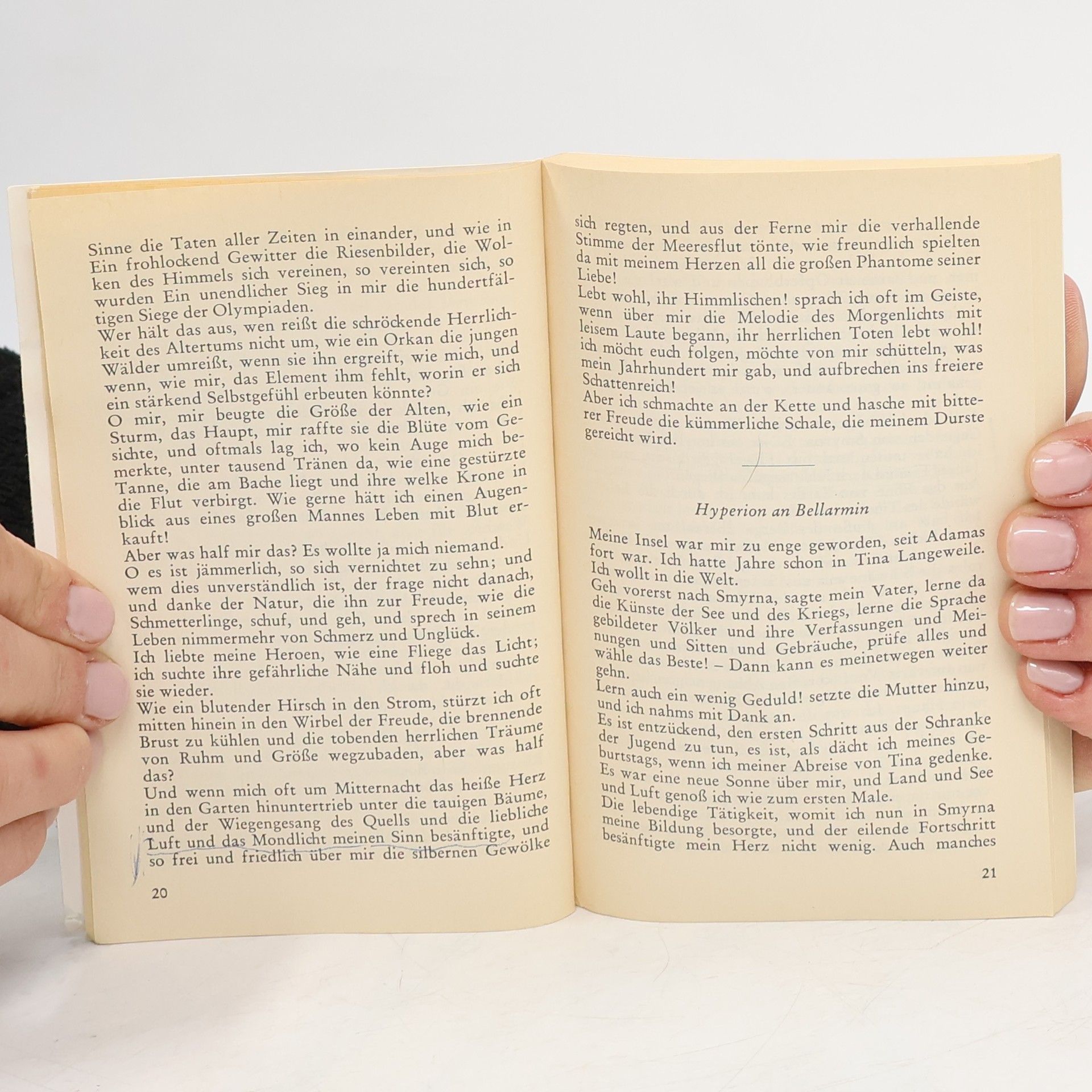 »Ich verspräche gerne diesem Buche die Liebe der Deutschen. Aber ich fürchte, die einen werden es lesen, wie ein Kompendium, und um das ›fabula docet‹ sich zu sehr bekümmern, indes die andern gar zu leicht es nehmen, und beede Teile verstehen es nicht. Wer bloß an meiner Pflanze riecht, der kennt sie nicht, und wer sie pflückt, bloß, um daran zu lernen, kennt sie auch nicht.« – Hölderlin