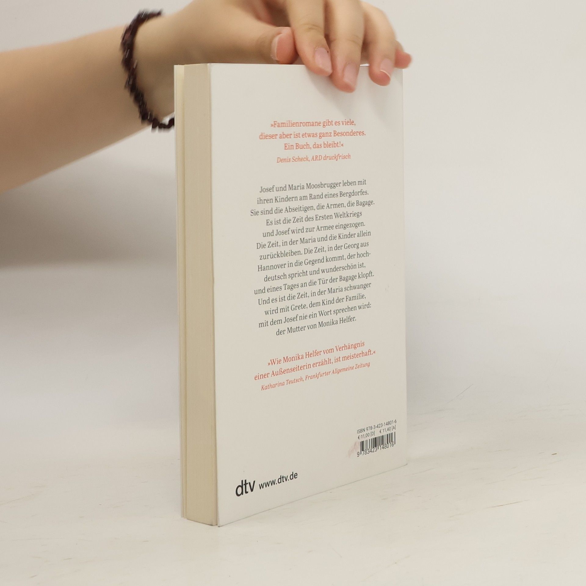 »Ein Buch, das bleibt!« Denis Scheck in ›ARD druckfrisch‹ Josef und Maria Moosbrugger leben mit ihren Kindern am Rand eines Bergdorfes. Sie sind die Abseitigen, die Armen, die Bagage. Es ist die Zeit des Ersten Weltkriegs und Josef wird zur Armee eingezogen. Die Zeit, in der Maria und die Kinder allein zurückbleiben und abhängig werden vom Schutz des Bürgermeisters. Die Zeit, in der Georg aus Hannover in die Gegend kommt, der nicht nur hochdeutsch spricht und wunderschön ist, sondern eines Tages auch an die Tür der Bagage klopft. Und es ist die Zeit, in der Maria schwanger wird mit Grete, dem Kind der Familie, mit dem Josef nie ein Wort sprechen wird: der Mutter der Autorin. Mit großer Wucht erzählt Monika Helfer die Geschichte ihrer eigenen Herkunft.