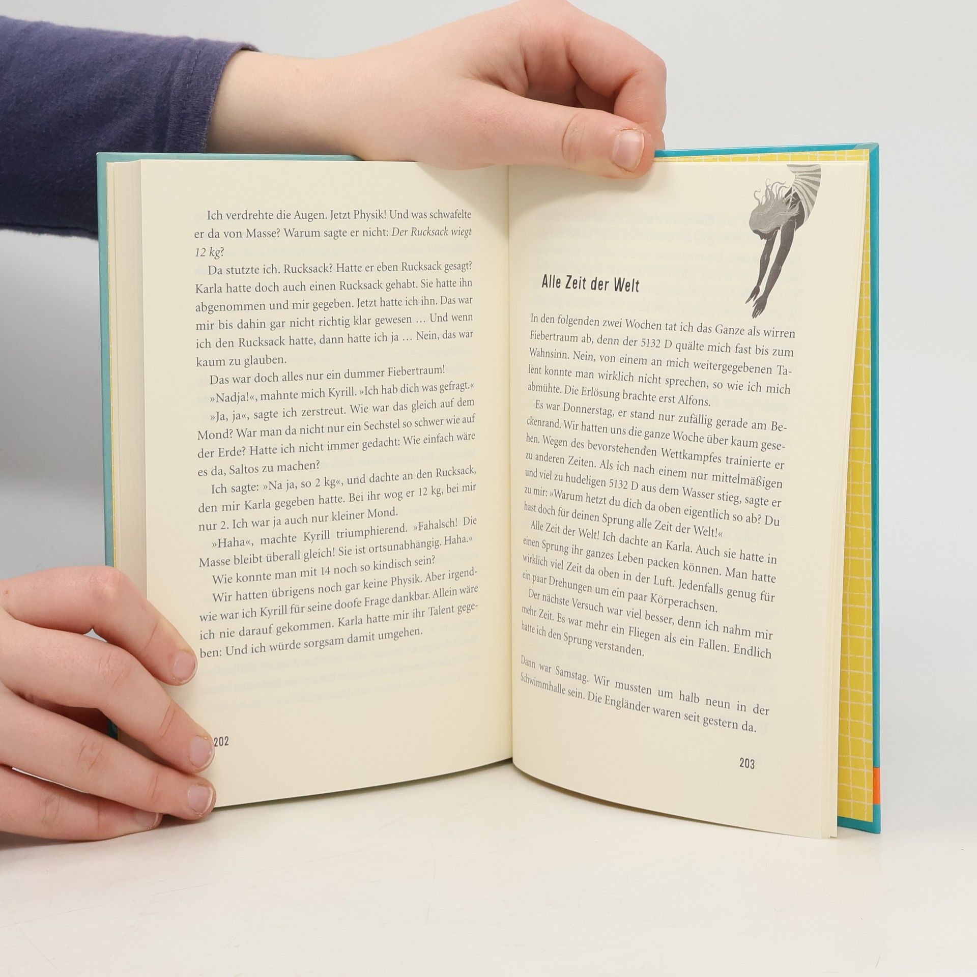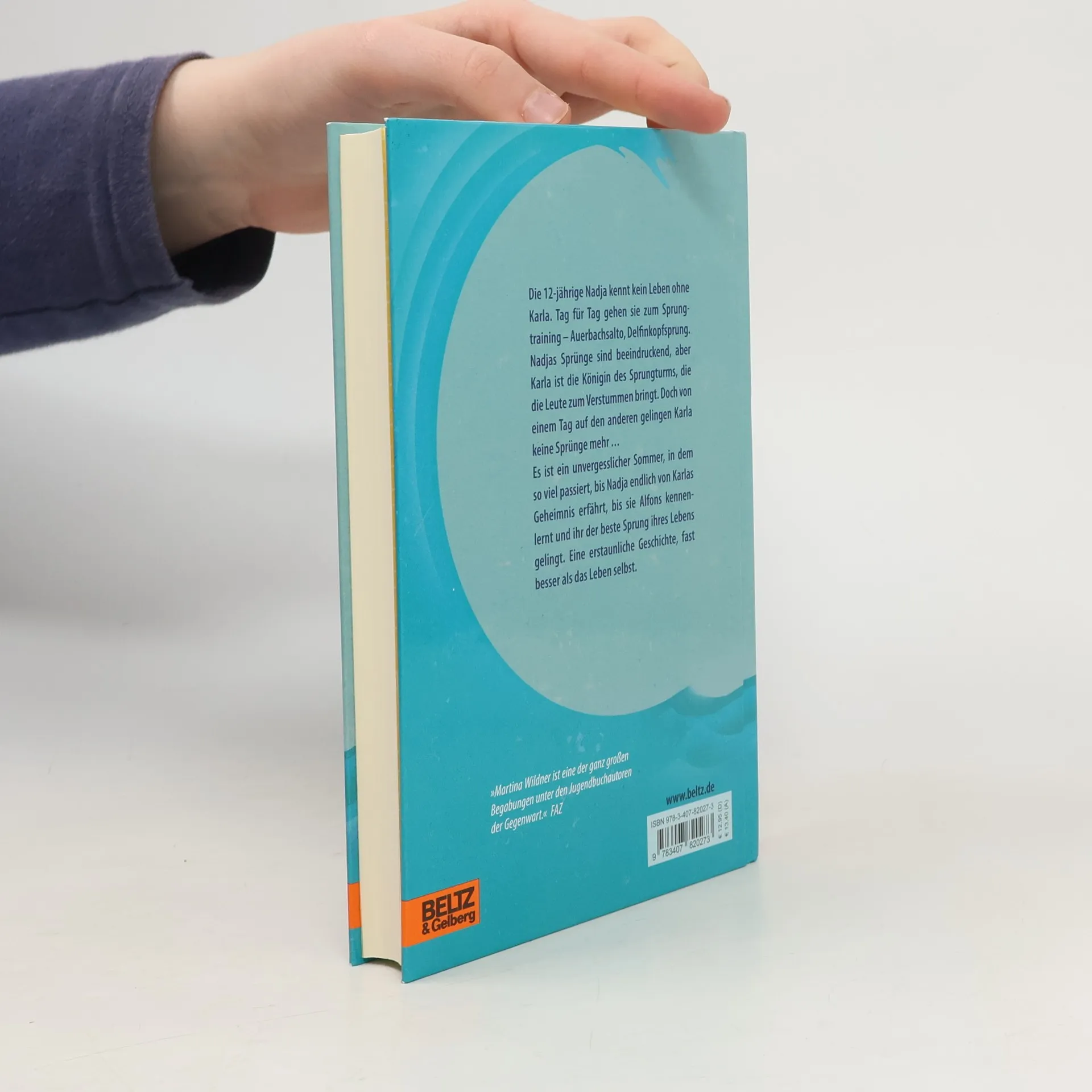Die Geschichte einer besonderen Freundschaft zweier Mädchen: Nadja und Karla, die Königin des Sprungturms. Ein unvergesslicher Sommer, in dem Nadja nicht nur hinter das Geheimnis kommt, warum Karla so phänomenal gut springt, sondern auch zu sich selbst findet. Als sie Alfons kennenlernt, schwebt sie im siebten Himmel. So ist das nämlich. Die 12-jährige Nadja kennt kein Leben ohne Karla und ohne Sprungtraining. Tag für Tag gehen sie ins Leistungszentrum - Auerbachsalto, Delfinkopfsprung und so. Zusammen sind sie die besten. Nadja ist fasziniert von Karla, die so unnahbar ist und mirakulös gut. Doch von einem Tag auf den anderen gelingen Karla keine Sprünge mehr. »Ein Pferd hat vier Beine und es stolpert auch«, sagt Nadjas russische Mutter. Oder hat es doch etwas mit Ingokru, dem Freund von Karlas Mutter, zu tun? Als Karla ganz mit dem Springen aufhört, wird alles anders. Erst jetzt kann Karla von ihrem Geheimnis, warum sie in jeden Sprung ihr ganzes Leben gepackt hat, erzählen. Und Nadja gelingt der beste Sprung ihres Lebens.