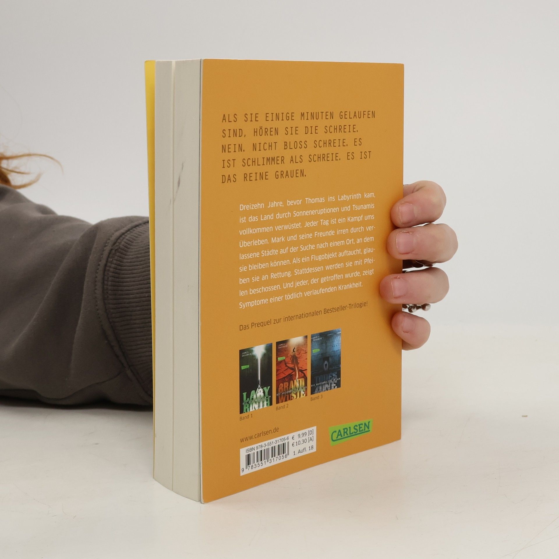 Was geschah, bevor Thomas ins Labyrinth kam und warum wurde ANGST gegründet? Fünfzehn Jahre früher ist das Land durch Sonneneruptionen und Tsunamis vollkommen verwüstet, die Ressourcen sind knapp und die wenigen Überlebenden warten verzweifelt auf Hilfe. Mark und seine Freunde irren durch die verlassenen Städte und Dörfer. Als ein Hubschrauber auftaucht, glauben sie an Rettung. Stattdessen werden sie mit Pfeilen beschossen. Und jeder, der getroffen wurde, zeigt Symptome einer tödlich verlaufenden Krankheit … Alle Bände der weltweiten Bestseller-Serie »Maze Runner«: Die Auserwählten im Labyrinth (Band 1)Die Auserwählten in der Brandwüste (Band 2)Die Auserwählten in der Todeszone (Band 3)Die Auserwählten - Kill Order (Band 4, spielt 15 Jahre vor Band 1)Die Auserwählten - Phase Null (Band 5, spielt unmittelbar vor Band 1)