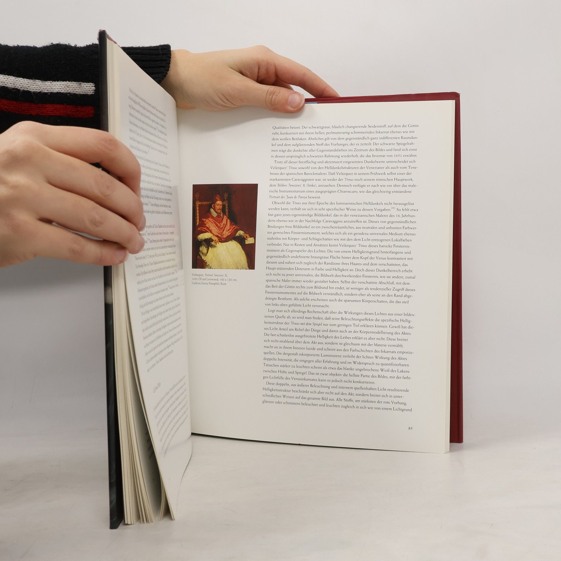 Venusdarstllungen stellten für die Maler seit dem 16. Jahrhundert eine besondere Herausforderung dar, ging es doch einerseitsum ein großes mythologisches Thema und andererseits um die immer raffiniertere Darstellung verführerischer Frauenakte, um die Schönheit des nackten Körpers.§Der Autor vergleicht das berühmte Werk des Velazquez mit anderen Venusdarstellungen der Kunstgeschichte, etwa von Giorgone, Veronese, Tizian, Goya und Manet.