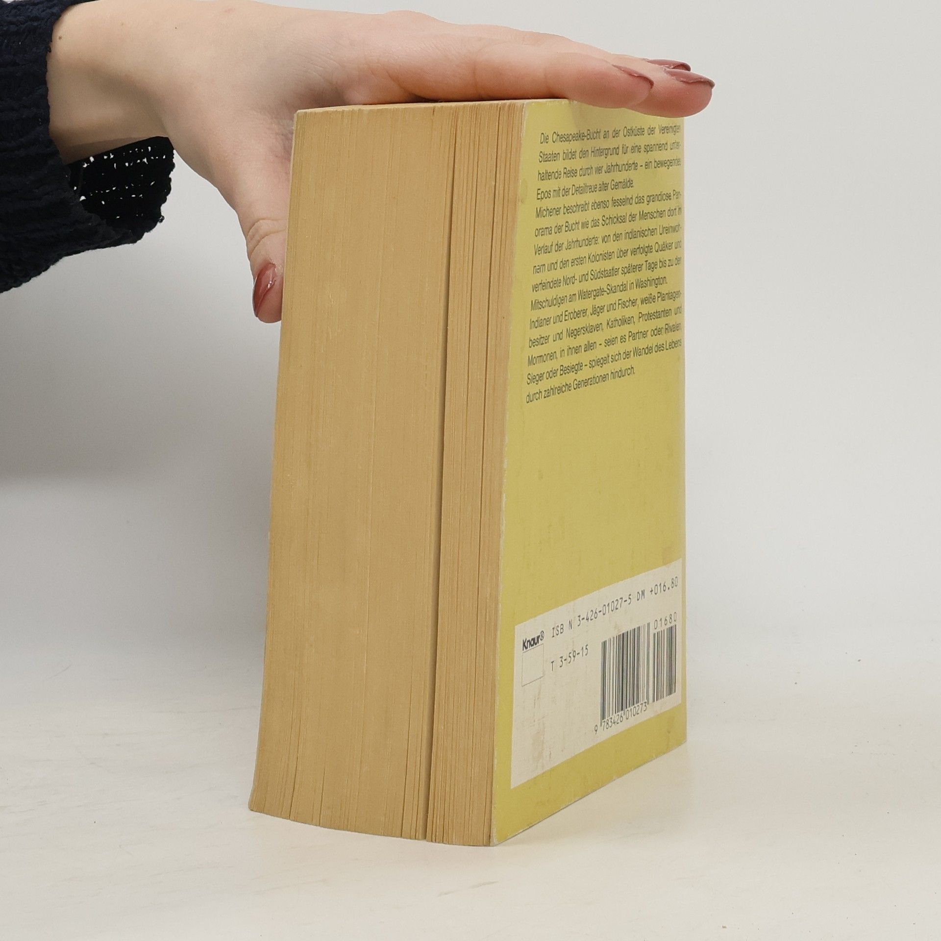 Die Chesapeake-Bucht an der Ostküste der Vereinigten Staaten von Amerika bildet den Hintergrund für eine spannend unterhaltende Reise durch vier Jahrhunderte-ein bewegendes Epos mit der Detailfreude alter Gemälde. Michener beschreibt fesselnd das grandiose Panorama der Bucht wie auch das Schicksal der Menschen dort im Verlauf der Jahrhunderte:von den indianischen Ureinwohnern und den ersten Kolonisten über verfolgte Quäker und verfeindete Nord- und Südstaatler späterer Tage bis hin zu den Mitschuldigen am Watergate-Skandal in Washington. Indianer und Eroberer, Jäger und Fischer, weiße Plantagenbesitzer und Negersklaven, Katholiken, Protestanten und Mormonen, in ihnen allen-seien es Partner oder Rivalen, Sieger oder Besiegte-spiegelt sich der Wandel des Lebens durch zahlreiche Generationen hindurch