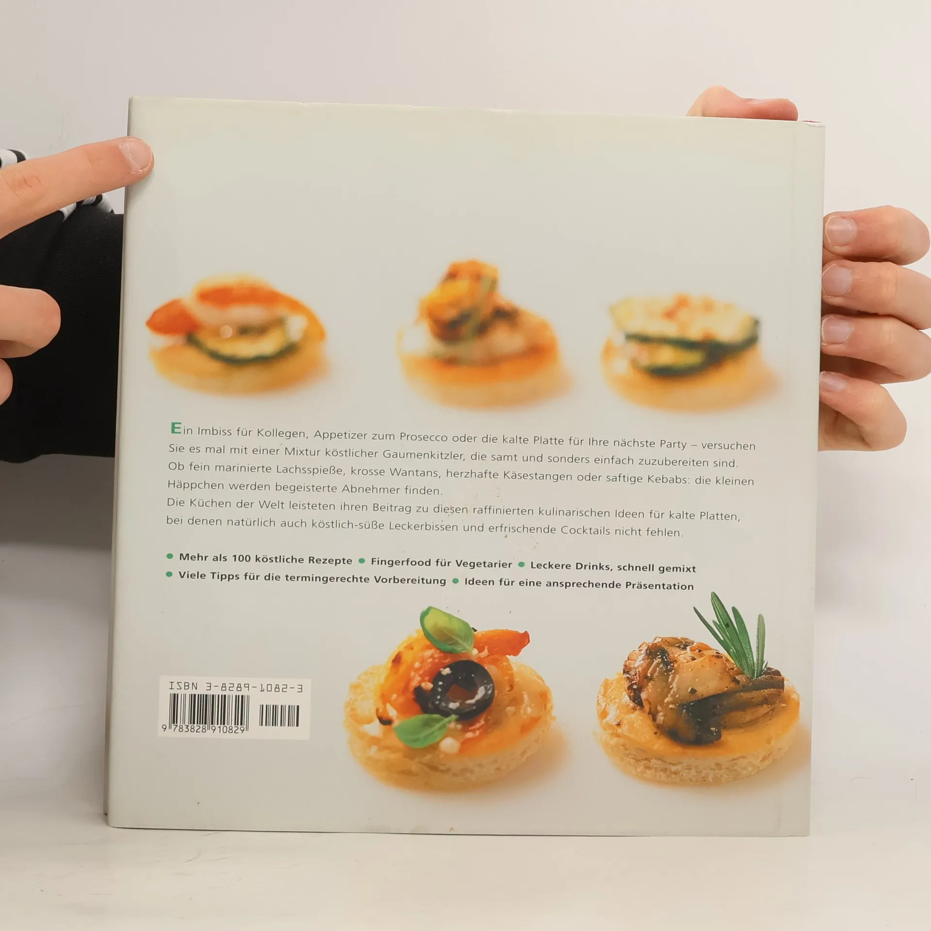 100 Vorschläge für lecker-raffinierte Häppchen, Appetitanreger, Fingerfood: Rezepte für Toasts, Brötchen, Bagels, Muffins, Mini-Pizzen und -Pasteten, Sushi, Rezepte mit Fleisch, Fisch, Gemüse, für süsse Leckereien und Rezepte für Cocktails; reich illustriert.
