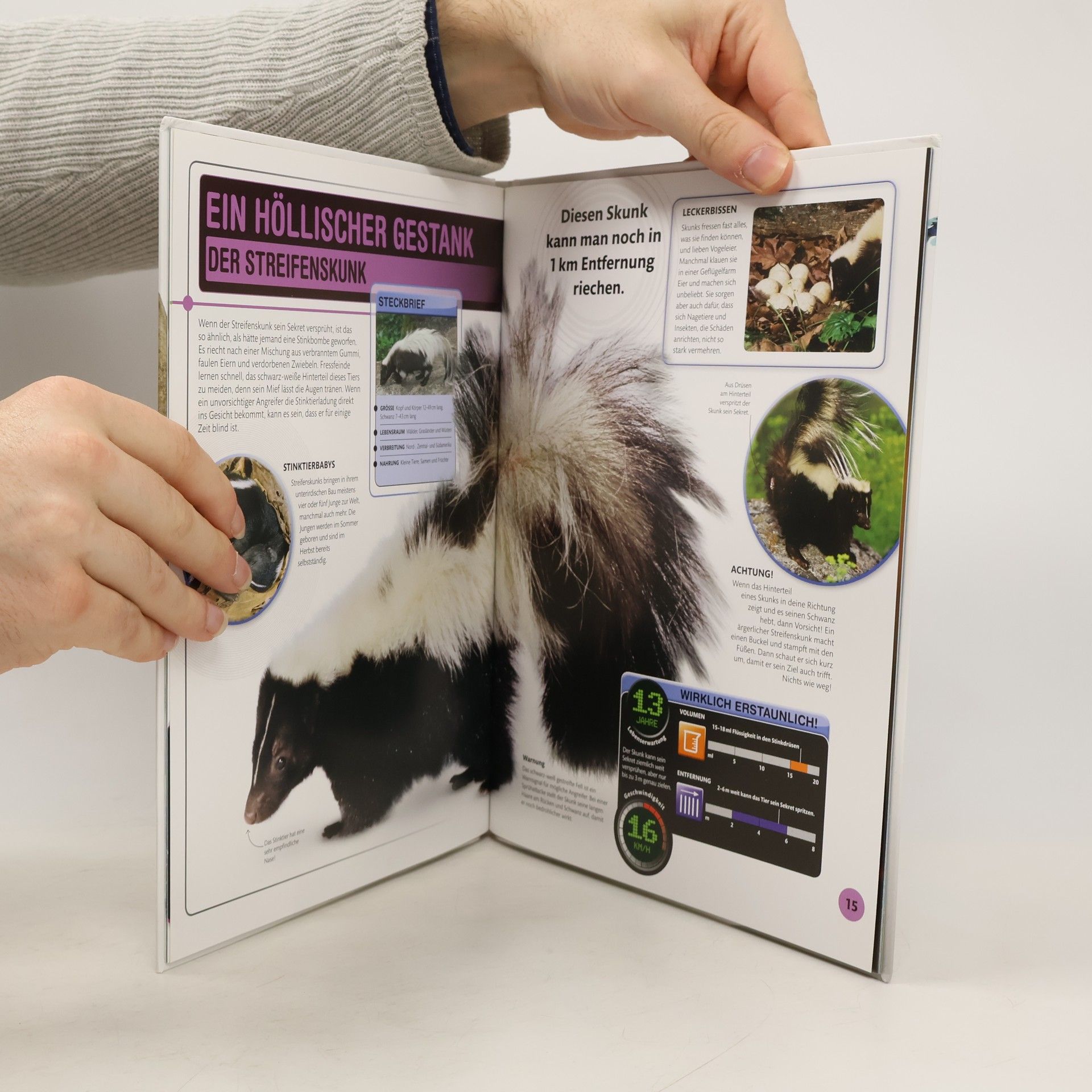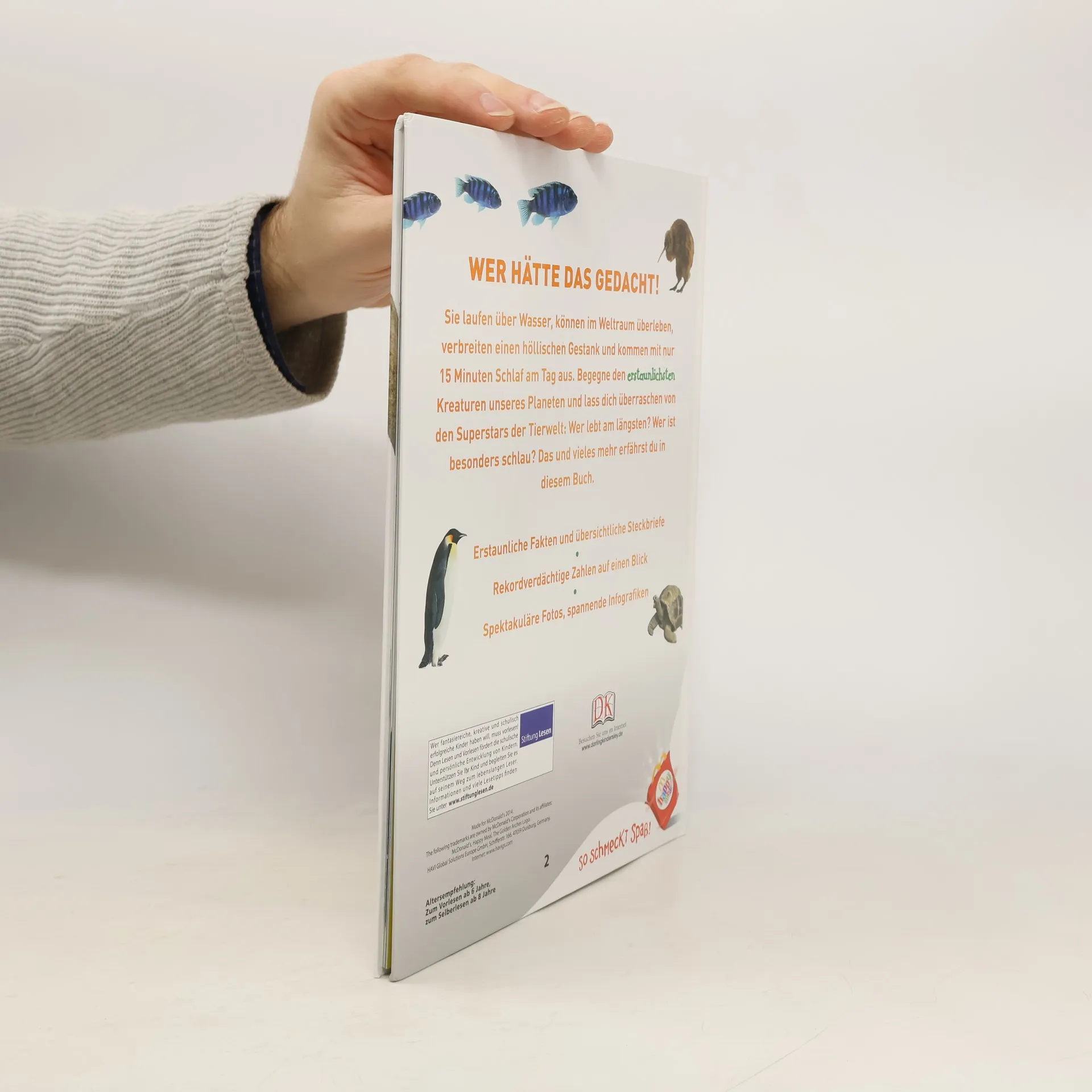 Welches Tier hat das größte Maul? Wer braucht nur 15 Minuten Schlaf am Tag? Und welches Tier legt die meisten Eier? Dieses Buch verrät alles über die beeindruckendsten Kreaturen unserer Erde: von Top-Athleten, die übers Wasser laufen können, über fliegende Säugetiere bis zu Vögeln, die Löcher in Beton hämmern. Tierarten mit verblüffenden Eigenschaften und Verhaltensweisen werden im doppelseitigen Porträt vorgestellt. Steckbriefe geben einen kurzen Überblick über Größe, Lebensraum, Verbreitung und Nahrung. Die Rubrik „Wirklich erstaunlich!“ stellt interessante Daten grafisch dar, so etwa Geschwindigkeit, Gewicht, Beißkraft oder Lebenserwartung. Eindrucksvolle, große Farbfotos setzen die Rekordhalter perfekt in Szene. Spektakuläre 3D-Grafiken enthüllen anatomische Details und gewähren ungewöhnliche Einblicke. Vom kleinen Floh bis zum großen Flusspferd - dieses Buch stillt jeden Wissenshunger von Tierfans! Ab 8 Jahren