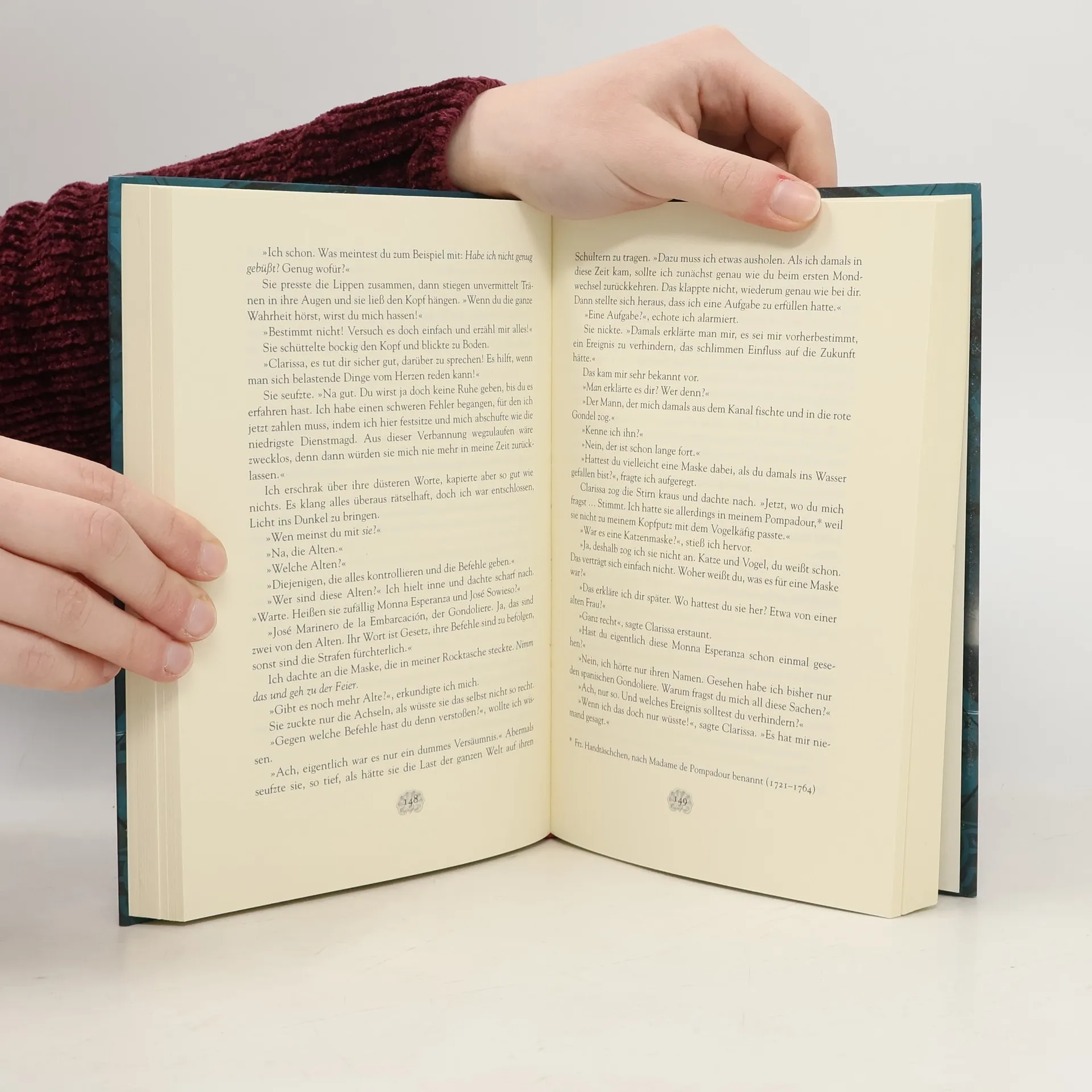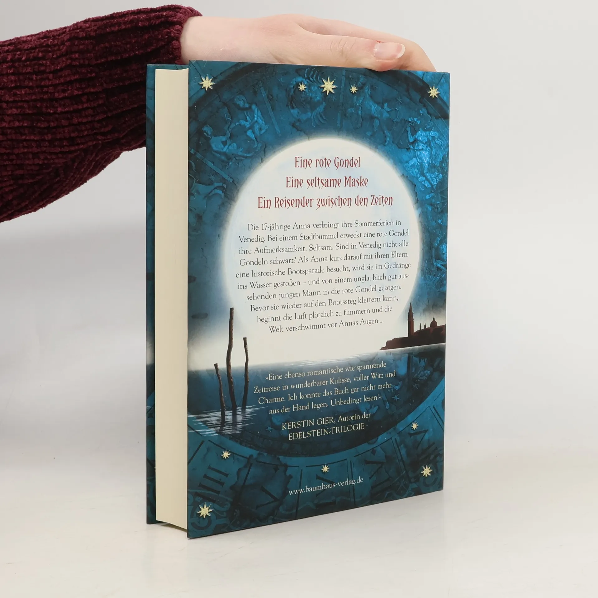 Die 17-jährige Anna verbringt ihre Sommerferien in Venedig. Bei einem Stadtbummel erweckt eine rote Gondel ihre Aufmerksamkeit. Seltsam. Sind in Venedig nicht alle Gondeln schwarz? Als Anna kurz darauf mit ihren Eltern eine historische Bootsparade besucht, wird sie im Gedränge ins Wasser gestoßen - und von einem unglaublich gut aussehenden jungen Mann in die rote Gondel gezogen. Bevor sie wieder auf den Bootssteg klettern kann, beginnt die Luft plötzlich zu flimmern und die Welt verschwimmt vor Annas Augen ...