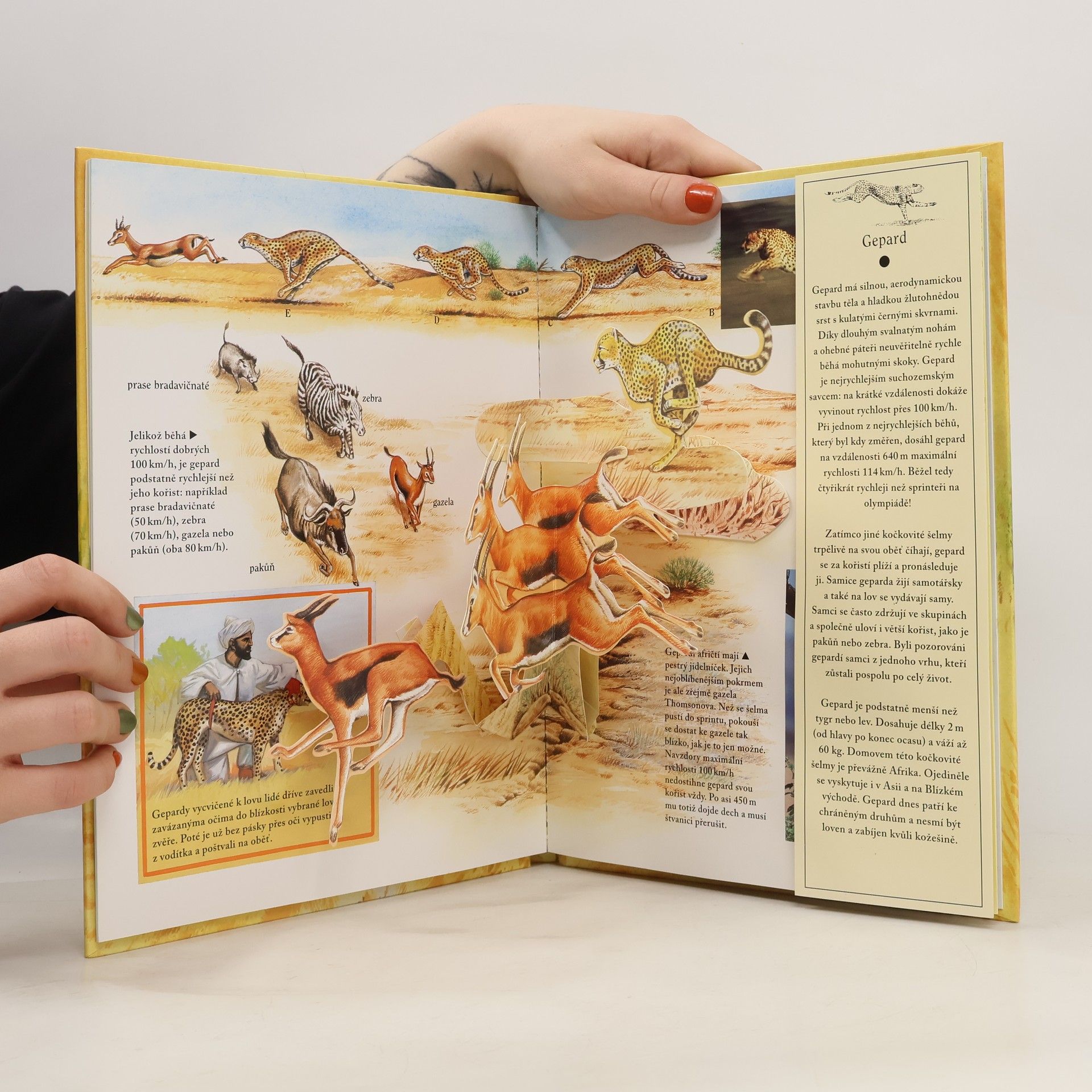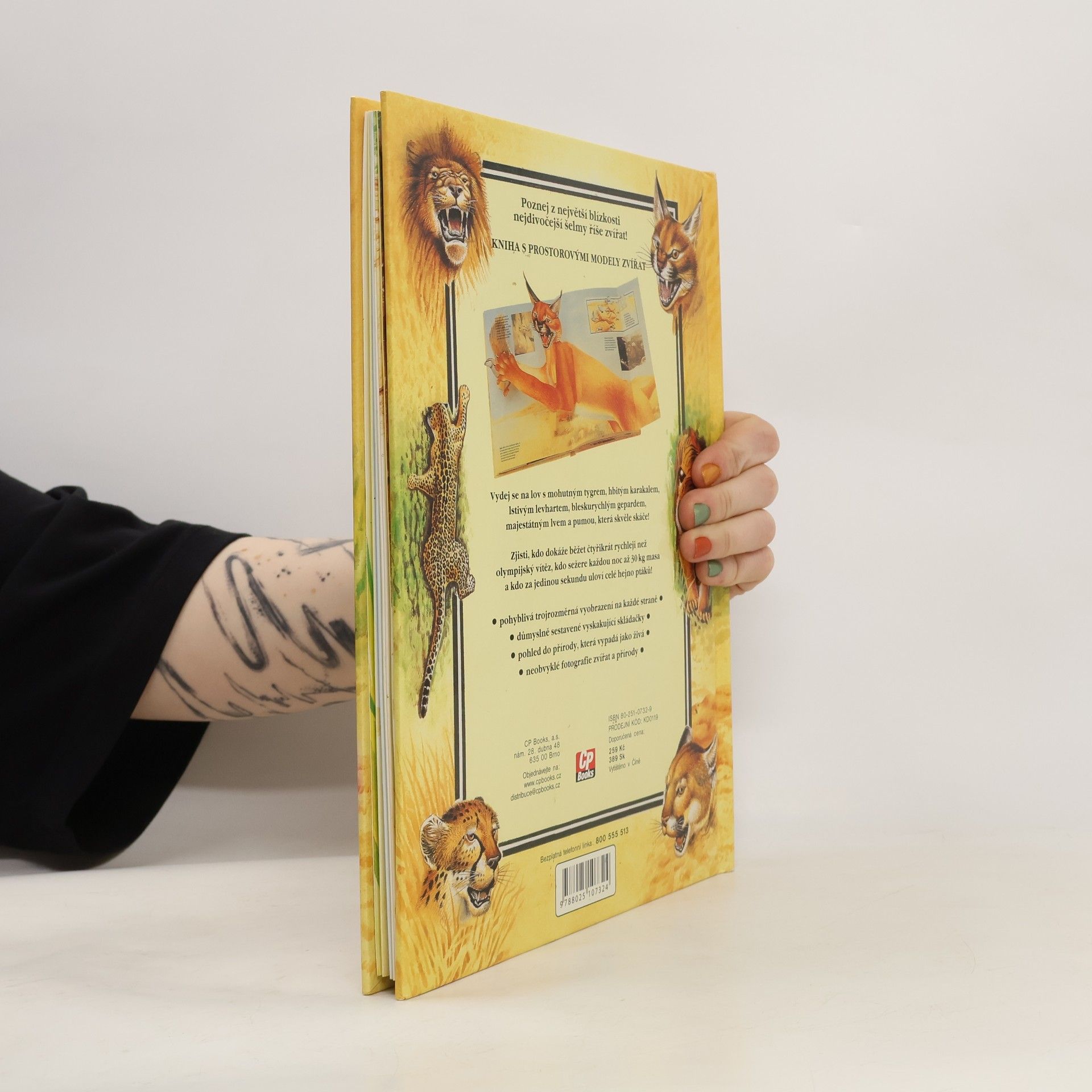 KNIHA S PROSTOROVÝMI MODELY ZVÍŘAT. Vydej se na lov s mohutným tygři, hitem karakalem, lstivým levhartem a pumou, která skvěle skáče. Zjisti, kdo dokáže běžet čtyřikrát rychleji než olympijský vítěz, kdo sežere každou noc až 30 kg masa a kdo za jedinou sekundu uloví celé hejno ptáků!