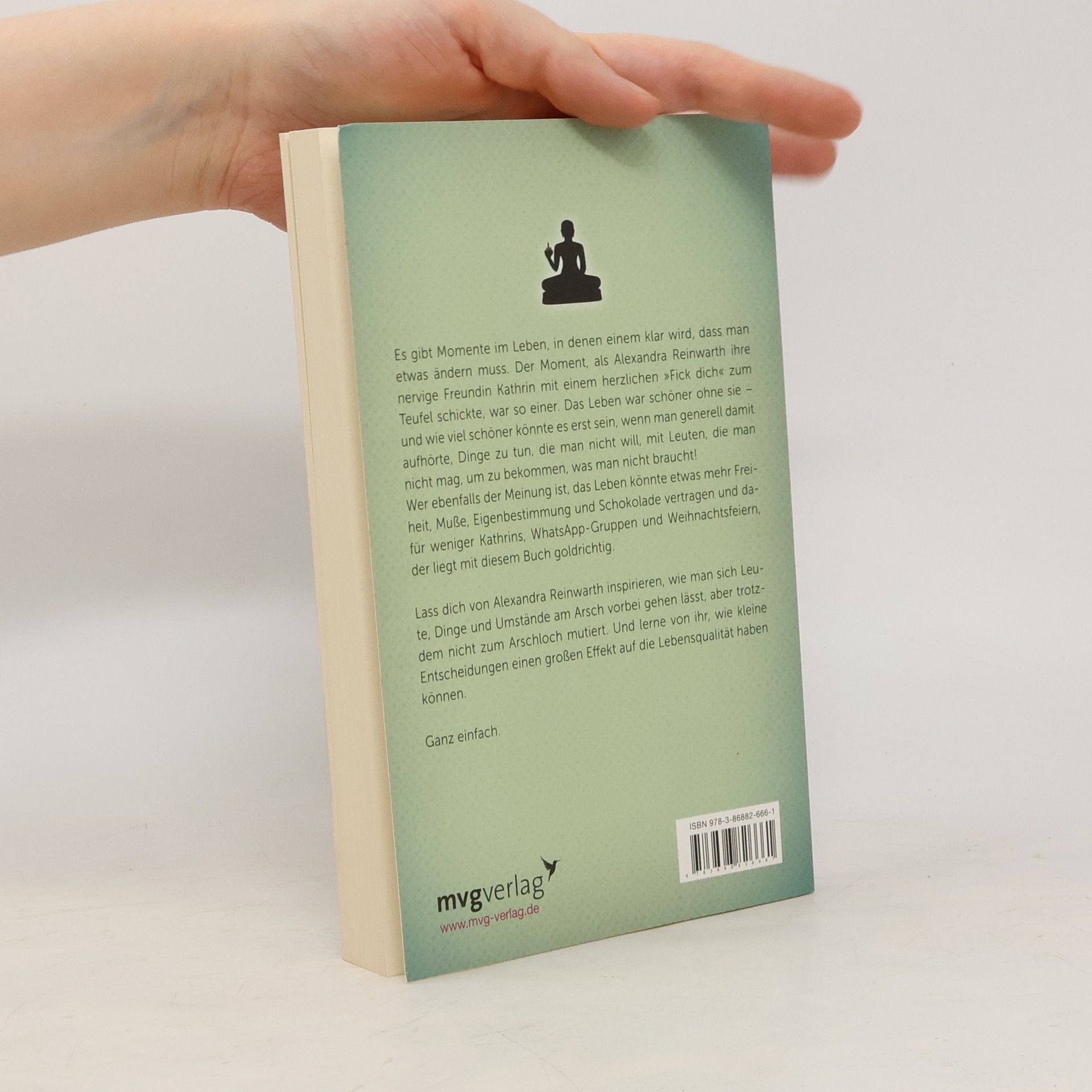 Es gibt Momente im Leben, in denen einem klar wird, dass man etwas ändern muss. Der Moment, als Alexandra Reinwarth ihre nervige Freundin Kathrin mit einem herzlichen „Fick Dich“ zum Teufel schickte, war so einer. Das Leben war schöner ohne sie – und wie viel schöner könnte es erst sein, wenn man generell damit aufhörte, Dinge zu tun, die man nicht will, mit Leuten die man nicht mag, um zu bekommen, was man nicht braucht! Wer noch der Meinung ist, das Leben könnte etwas mehr Freiheit, Muße, Eigenbestimmung und Schokolade vertragen und dafür weniger Kathrins, WhatsApp-Gruppen und Weihnachtsfeiern, der ist hier goldrichtig. Lassen Sie sich von Alexandra Reinwarth inspirieren, wie man sich Leute, Dinge und Umstände am Arsch vorbei gehen lässt, aber trotzdem nicht zum Arschloch mutiert. Und lernen Sie von ihr, wie kleine Entscheidungen einen großen Effekt auf die Lebensqualität haben können. Ganz einfach. Mehr Informationen und weitere tolle Produkte zu Am Arsch vorbei gibt es unter: www. am-arsch-vorbei. de