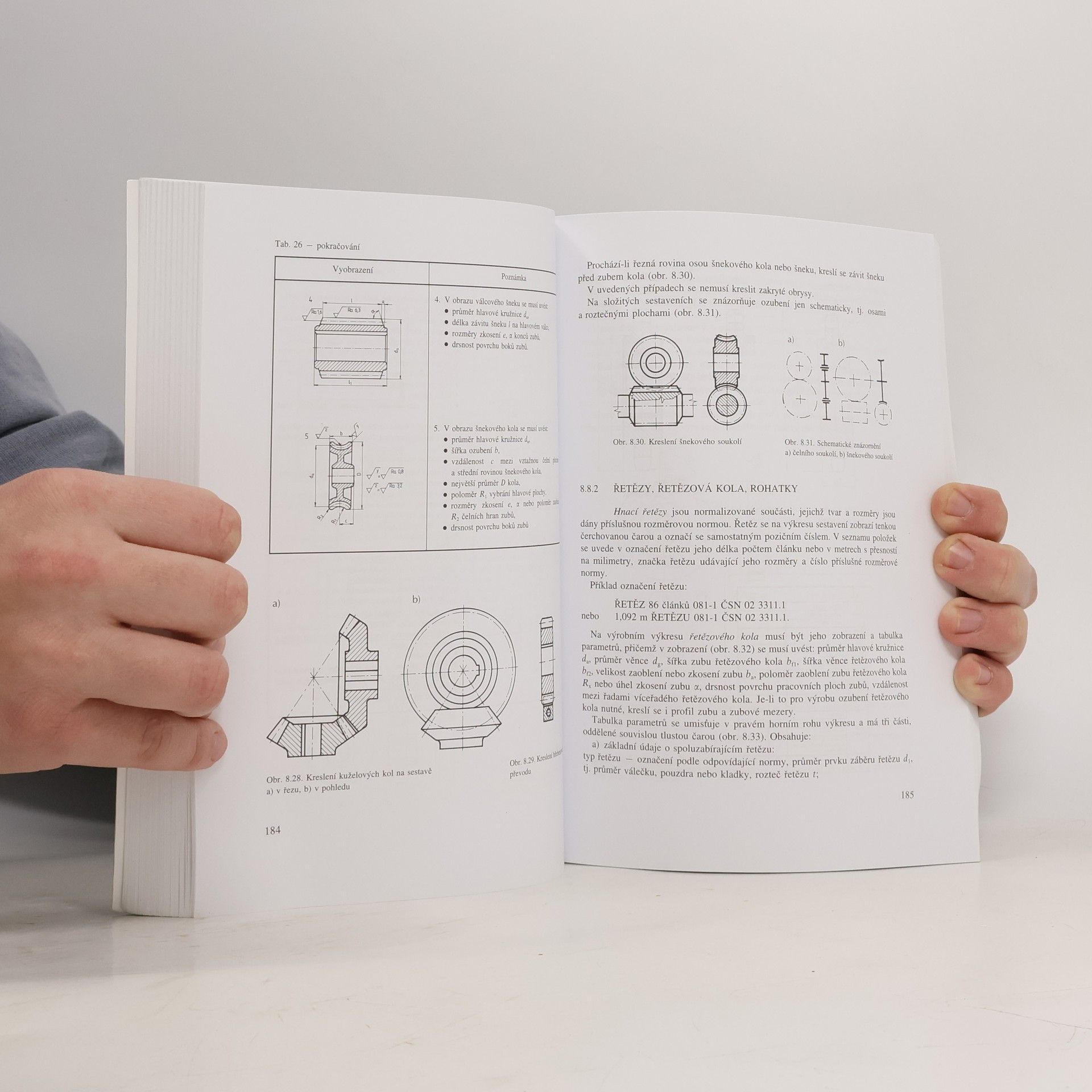 Úvod je věnován orientaci čtenáře v uspořádání národních i mezinárodních norem EN a ISO s ohledem na jejich aplikaci při vytváření technické dokumentace. Čtenář je seznámen s výběrem a používáním kreslicích pomůcek, prováděním geometrických konstrukcí a jejich využitím, s kreslením náčrtů a zásadami technického zobrazování. Na tyto zásady navazuje způsob udávání rozměrů na výkresech, předepisování jejich přesnosti, tvaru a polohy i jakosti povrchu strojních součástí. Získané znalosti jsou využívány a rozvinuty v kapitole věnované kreslení strojních součástí a spojů a při provádění výrobních výkresů. V druhé části učebnice je zpracována učební osnova předmětu určená deskriptivní geometrii. Je členěna na pravoúhlé promítání na dvě k sobě kolmé průmětny, sestrojování sítí těles a řešení jejich průniků. Text doplňuje výběr rovinných křivek se zaměřením na technické aplikace ozubených kol, mechanismů a jejich trajektorií. Deskriptivní geometrii uzavírá kapitola věnovaná řešení úloh v prostorových zobrazeních. Učivo je zpracováno podle platných pravidel a zásad technického kreslení zakotvených v ČSN a převzatých normách EN a ISO. Text je doplněn řešenými příklady a úlohami na procvičení a ověření znalostí. Učebnice je určena žákům středních odborných škol, vysokých škol technického zaměření i technickou praxi.