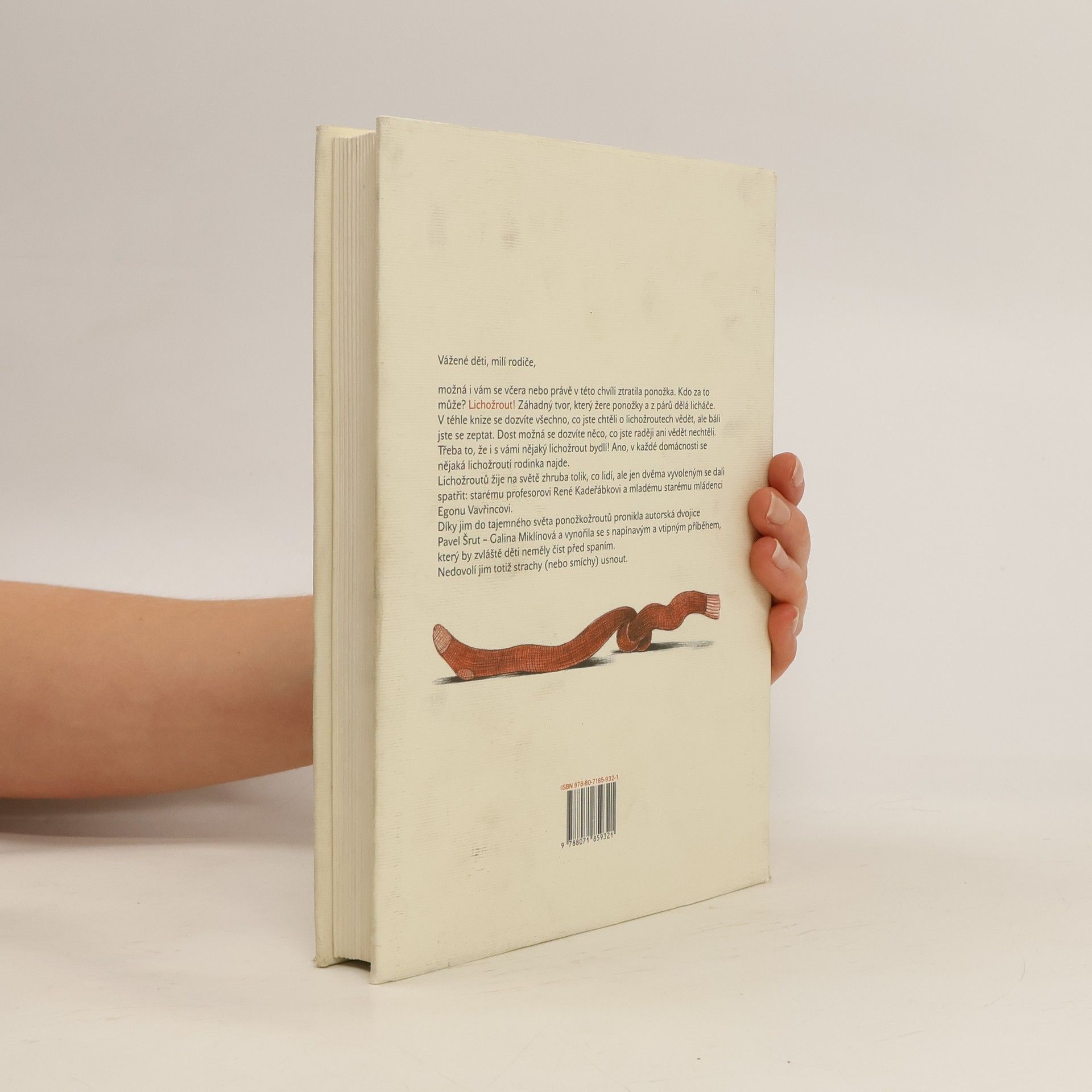 Je to nejobratnější lupič všech dob a dosud nikdy nebyl dopaden. Možná i vám se včera nebo právě v této chvíli ztratila ponožka. Kdo za to může? Lichožrout! Záhadný tvor, který žere ponožky a z párů dělá licháče. Do jejich tajemného světa pronikla autorská a ilustrátorská dvojice Pavel Šrut – Galina Miklínová a vynořila se s napínavým a vtipným příběhem jedné lichožroutí rodinky, starého mládence pana Vavřince a malého nešiky lichožrouta Hihlíka.