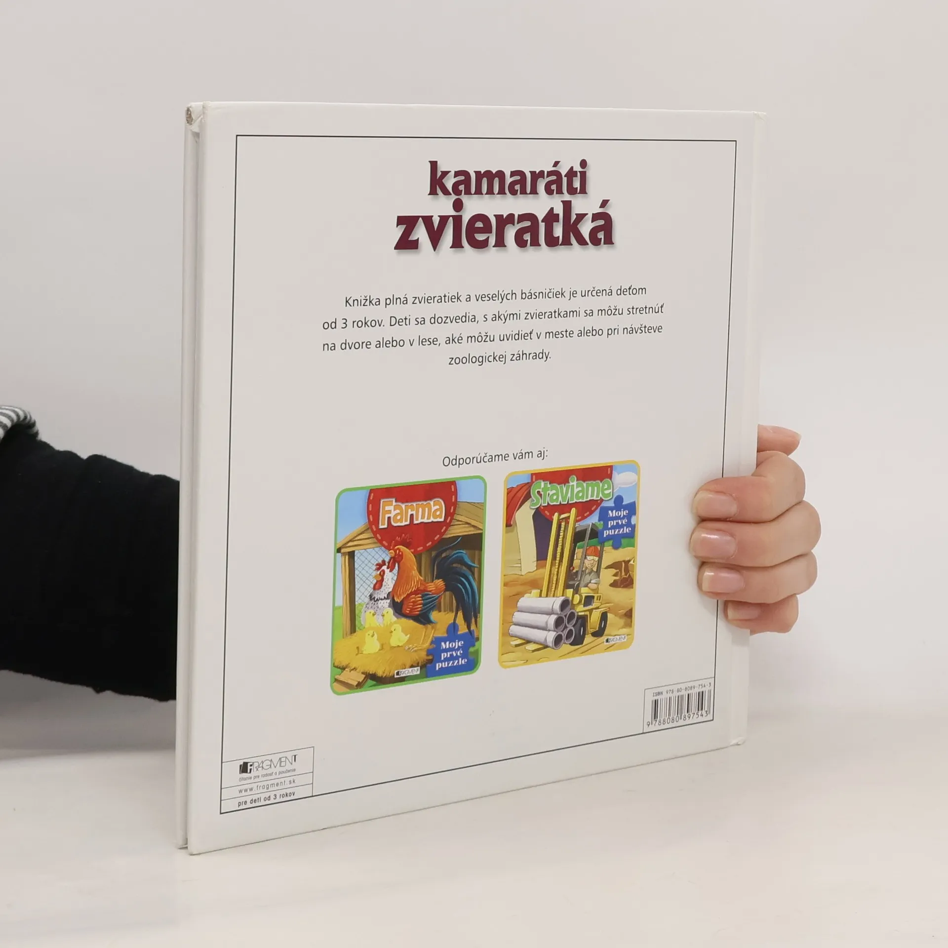 Knižka plná zvieratiek a veselých básničiek je určená deťom od 3 rokov. Deti sa dozvedia, s akými zvieratkami sa môžu stretnúť na dvore alebo v lese, aké môžu uvidieť v meste alebo pri návšteve zoologickej záhrady.Kapitoly: Zvieratká na dvore, Zvieratká v lese, Zvieratká v prírode, Zvieratká v meste, Zvieratká u nás doma, Zvieratká v zoo.Dotlač 1. vydania