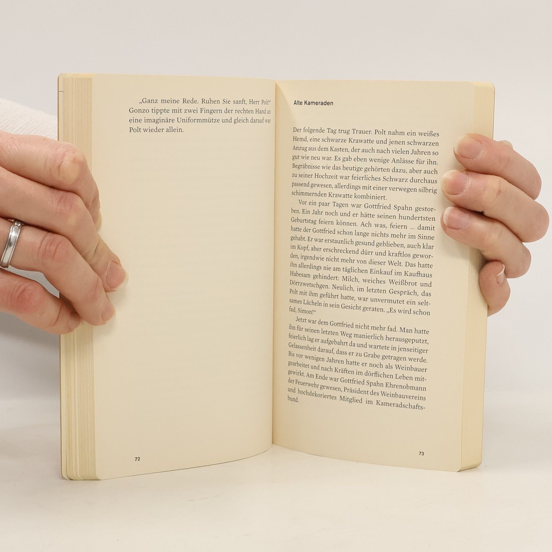 Der ehemalige Gendarmerieinspektor Simon Polt ist im Ruhestand, aber nicht aus der Welt. Er hat sich dem Weinbau verschrieben und die Gemischtwarenhandlung von Aloisia Habesam übernommen. In seiner vertrauten Umgebung hat sich das Leben jedoch verändert: Städter entdecken die Freuden des Landlebens, während viele Dorfbewohner fliehen. Polt bleibt sich treu, besonders in seinem Sinn für Gerechtigkeit und sein Gespür für die Menschen. Jeden ersten Sonntag im Monat lädt er zu geselligen Treffen in sein Presshaus, wo er mit Altersgenossen über Wein, das Leben und die Entwicklungen im Dorf plaudert. Nach einem dieser Treffen wird sein Heimweg durch die Kellergasse zu einem unerwarteten Erlebnis, das ihn sowohl fasziniert als auch bedrückt. Als er vom schrecklichen Ausgang erfährt, steht er vor einem Rätsel, dessen Lösung ihm schwerfällt. Doch er ist entschlossen, Klarheit zu schaffen. Alfred Komarek vermittelt in diesem neuesten Band ein authentisches Bild des Weinviertels und seiner Kellergassen. Simon Polt bleibt ein leidenschaftlicher Verteidiger der Gerechtigkeit, der sich für die Menschen in seinen geliebten Dörfern einsetzt, auch wenn es schmerzhaft ist. Die Verfilmung mit Erwin Steinhauer als Polt und Iris Berben ist in Arbeit und wird 2017 ausgestrahlt.