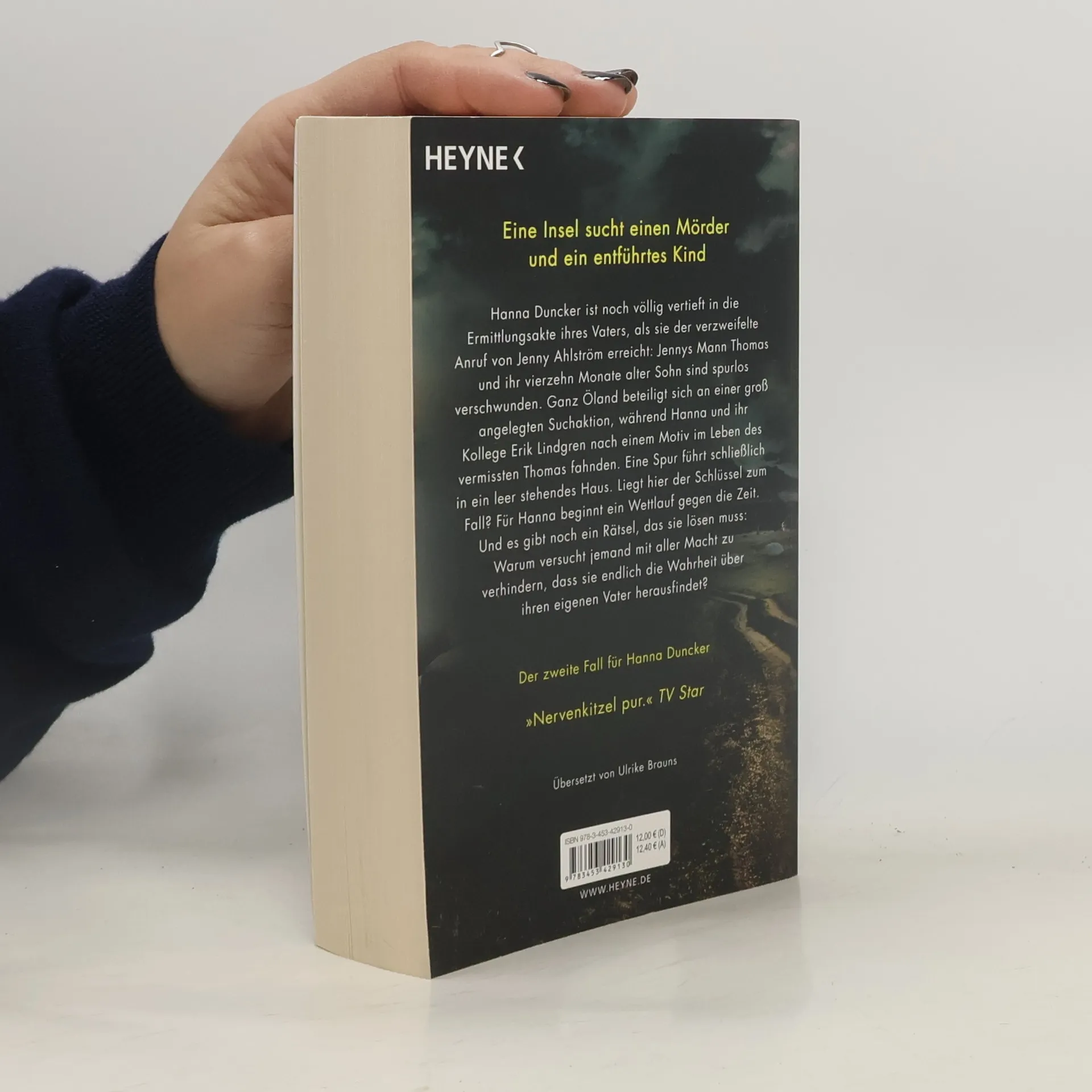 Eine Insel sucht einen Mörder und ein entführtes Kind Hanna Duncker ist noch völlig vertieft in die Ermittlungsakte ihres Vaters, als sie der verzweifelte Anruf von Jenny Ahlström erreicht: Jennys Mann und ihr vierzehn Monate alter Sohn sind spurlos verschwunden. Ganz Öland beteiligt sich an einer Suchaktion, während Hanna und ihr Kollege Erik Lindgren nach einem Motiv im Leben des vermissten Vaters fahnden. Eine Spur führt schließlich in ein leer stehendes Haus. Liegt hier der Schlüssel zum Fall? Für Hanna beginnt ein Wettlauf gegen die Zeit. Und es gibt noch ein Rätsel, das sie lösen muss: Warum versucht jemand mit aller Macht zu verhindern, dass sie endlich die Wahrheit über ihren eigenen Vater herausfindet? Die »Hanna Duncker«-Reihe: Band 1: Nachttod Band 2: Finsterhaus Band 3: Dunkelwald Band 4: Nebelstunde Band 5: Dämmersee Alle Bände können auch unabhängig voneinander gelesen werden.