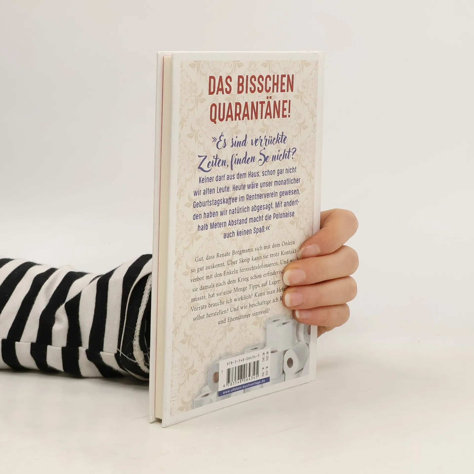Das bisschen Quarantäne! Hier schreibt Renate Bergmann, guten Morgen! Das sind verrückte Zeiten, finden Se nicht? Keiner darf aus dem Haus, schon gar nicht wir alten Leute. Heute wäre unser monatlicher Geburtstagskaffee im Rentnerverein gewesen, den haben wir natürlich abgesagt. Mit anderthalb Metern Abstand versteht eh keiner was beim Unterhalten, und die Polonaise macht so auch keinen Spaß. Aber mal ehrlich, man hat zu Hause doch immer was zu tun und man kann es sich ja schön machen. Früher nach dem Krieg mussten wir ja auch erfinderisch sein, und damals hatten wir noch kein Skeip für die Seniorengymnastik. Da fällt mir ein, ich muss noch die Teppichfransen kämmen. Und dann erzähle ich Ihnen, wie ich, Ilse und Kurt mit der Krise umgehen. Da können Se noch was lernen! Ihre Renate Bergmann