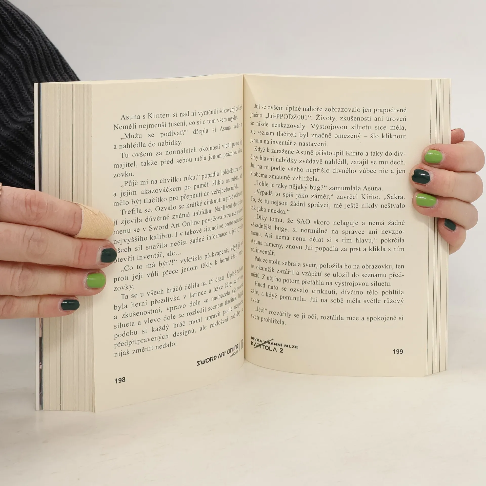 Hlavního hrdinu příběhu o smrtícím MMORPGčku Sword Art Online, ze kterého se do jeho pokoření nelze odhlásit, už známe. Kromě něj a dalších dobyvatelů z první linie v něm ale uvízlo i mnoho jiných hráčů s různými povoláními a vlastními příběhy.Druhá kniha vám představí epizody z krutého, ale přesto radostného herního života čtyř takových uvězněných dívek, které se ve hře setkaly se sólistou Kiritem: krotitelky šelem Silicy, kovářky Lisbeth, záhadné dívky Jui a Sači, na jejíž osud Černý šermíř nezapomene do konce života.
