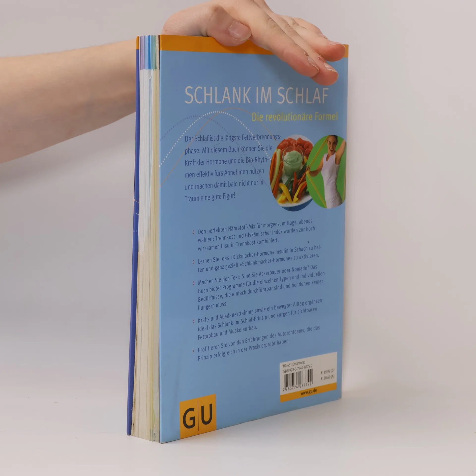 Der Schlaf ist die längste Fettverbrennungsphase am Tag. Lernen Sie, diese effektiv für sich zu nutzen. Entscheidend ist, den Körper morgens, mittags und abends jeweils mit dem richtigen Nährstoff-Mix zu versorgen, damit er das bekommt, was er gemäß seinem Biorhythmus optimal verwerten kann. Am Tag sind vor allem Kohlenhydrate als Energiequelle wichtig, um leistungsfähig zu sein. Die Nacht nutzt der Körper zur Erholung und für Reparaturen - eine eiweißreiche Mahlzeit sorgt dafür, dass die Energie dafür aus den Fettzellen kommt. Wer also das Richtige zum richtigen Zeitpunkt isst, macht bald nicht nur im Traum eine gute Figur! Das Buch erklärt, wie man den Einfluss des „Dickmacherhormons“ Insulin hemmt und die Schlankmacher-Hormone gezielt aktiviert. Interessante Vorgänge, die sich Tag für Tag im Körper abspielen, werden veranschaulicht. Sattmacher-Rezepte werden ideal kombiniert mit Kraft- und Ausdauertraining für optimale Fettverbrennung.