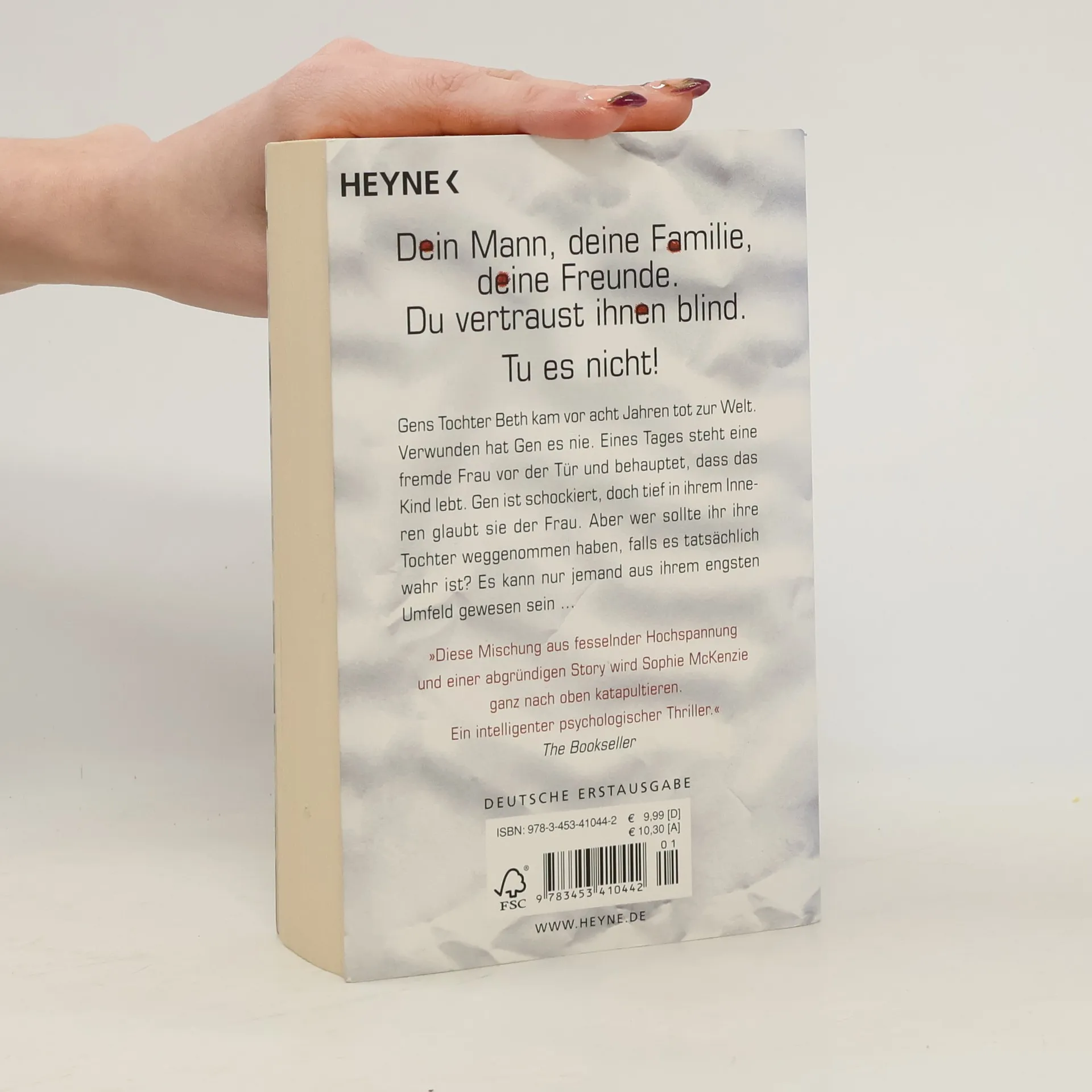 Die Hoffnung lebt – und wird dich zerstören Gens Tochter kam vor acht Jahren tot zur Welt. Nun steht eine fremde Frau vor ihrer Tür und behauptet, dass sie lebt. Dass alle bei der Geburt Anwesenden gekauft waren, damit jemand Gen ihr Baby wegnehmen konnte. Zunächst hält Gen das für einen geschmacklosen Scherz. Aber etwas in ihr sagt ihr, dass die Frau die Wahrheit sagt, und eine trügerische Hoffnung keimt in ihr auf. Aber wer sollte so etwas tun, falls es tatsächlich wahr ist? Es kann nur jemand aus ihrem engsten Umfeld gewesen sein ...