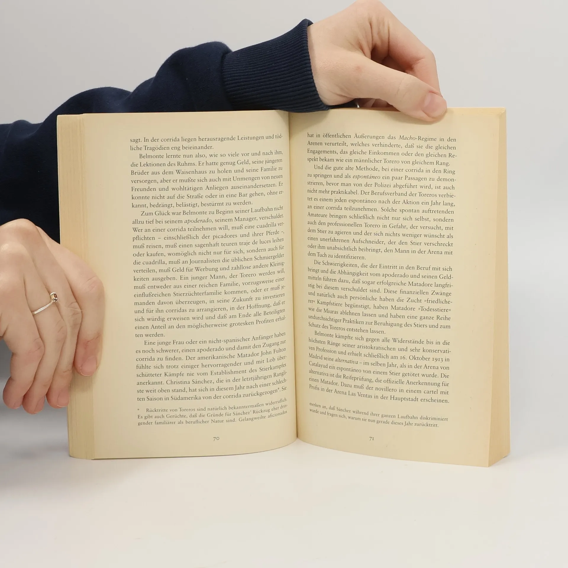 Alison Kennedy erzählt von Stieren und Züchtern, Toreros und ihrem Publikum, von Regeln, Tricks und Risiken, von der Faszination, dem Schrecken und sexuellen Sog eines mörderischen Schauspiels - dem Stierkampf. Sie porträtiert den Dichter Federico Garcia Lorca, der den Stierkampf liebte, und erzählt von berühmten Toreros. Sie beschreibt eine Reise nach Spanien, zu den Stieren und den Arenen, den Stätten des öffentlichen Todes. Und sie stellt die Frage, was einen Menschen bewegt, sich vor den Augen eines Riesenpublikums der Möglichkeit eines blutigen Todes oder aber der Gefahr schwerster Verletzungen auszusetzen.