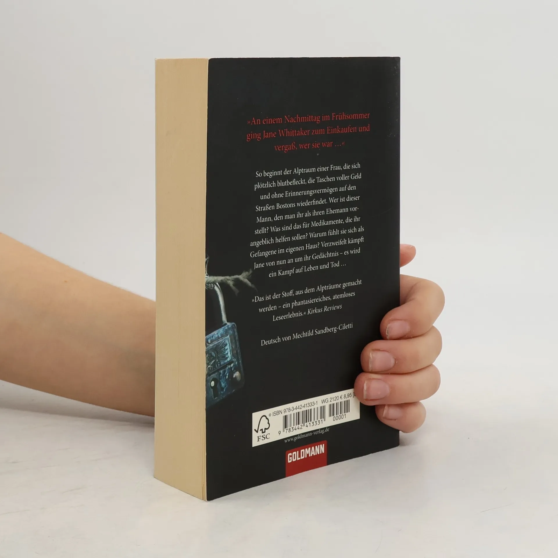 „An einem Nachmittag im Frühsommer ging Jane Whittaker zum Einkaufen und vergaß, wer sie war…“ So beginnt der Alptraum einer Frau, die sich plötzlich blutbefleckt, die Taschen voller Geld und ohne Erinnerungsvermögen auf den Straßen Bostons wiederfindet. Wer ist dieser Mann, den man ihr als ihren Ehemann vorstellt? Was sind das für Medikamente, die ihr angeblich helfen sollen? Und warum fühlt sie sich als Gefangene im eigenen Haus? Verzweifelt kämpft Jane von nun an um ihr Gedächtnis – es wird ein Kampf auf Leben und Tod …